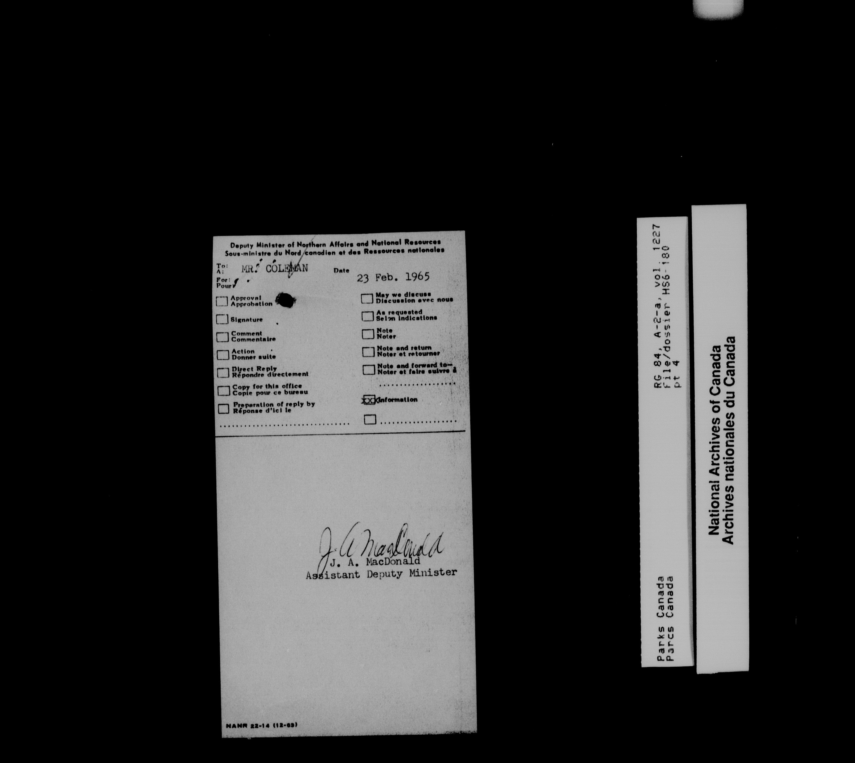 Department of Canadian Heritage, Canadian Parks Service : Park/subject classification system - 14001