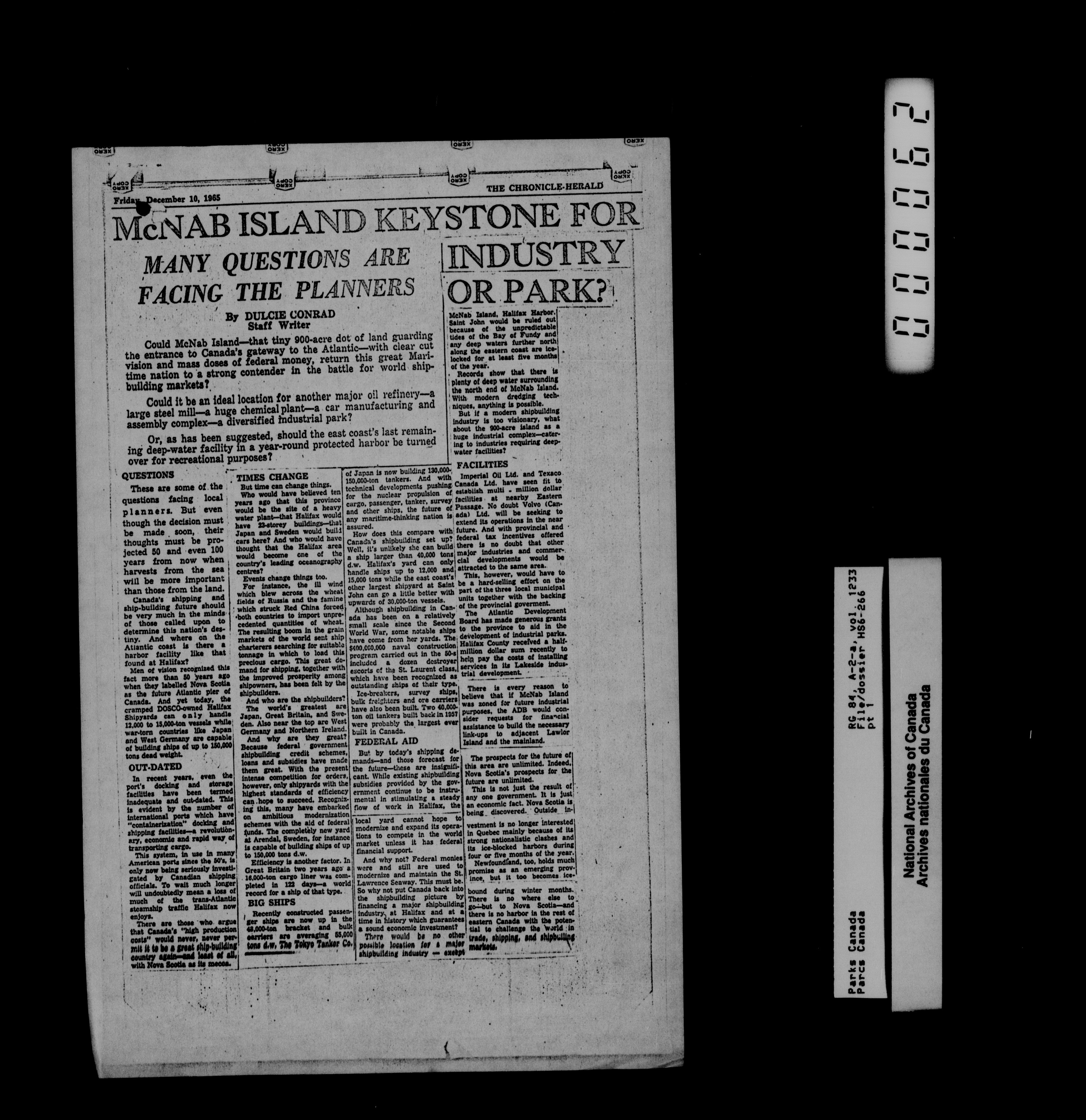 Department of Canadian Heritage, Canadian Parks Service : Park/subject classification system - 14006