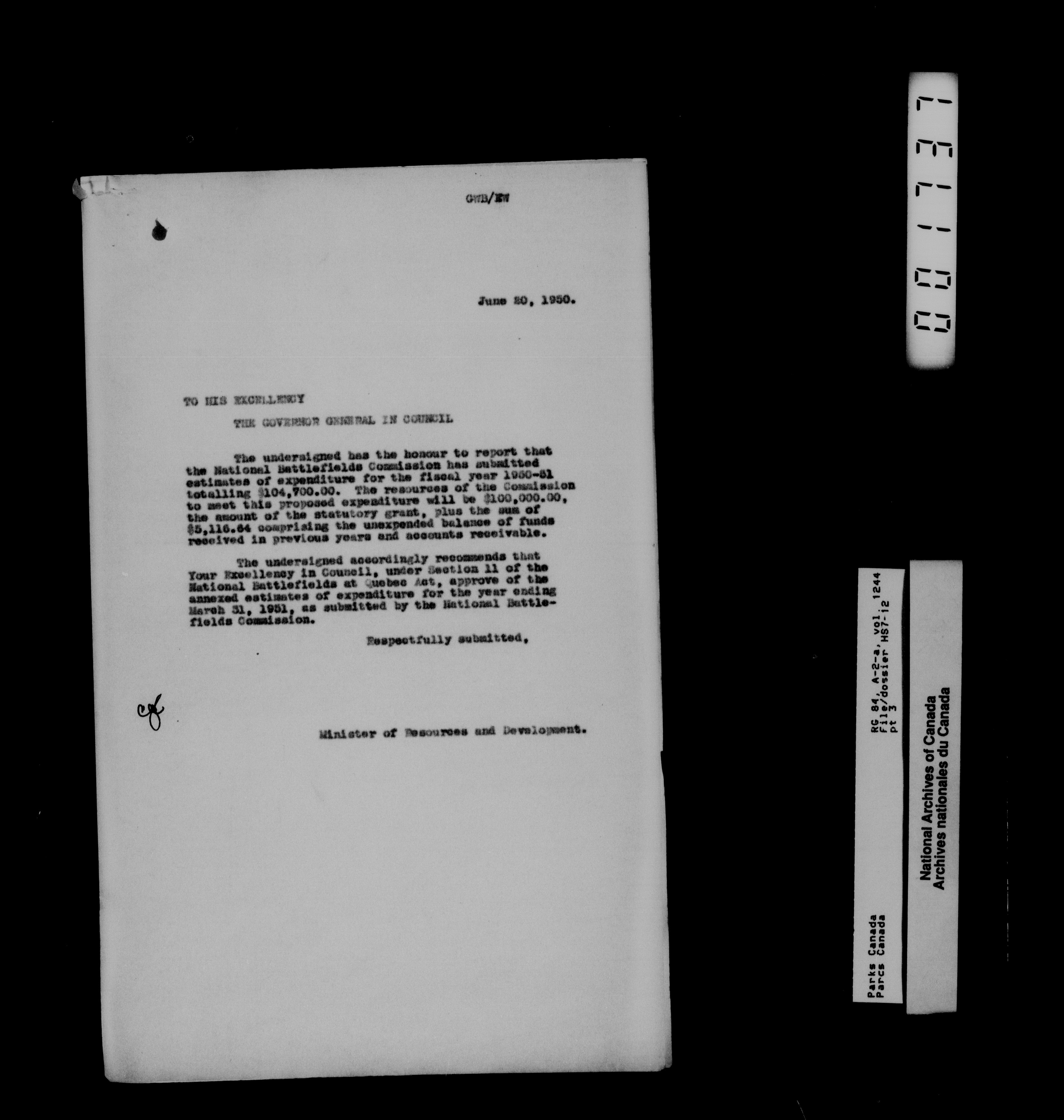 Department of Canadian Heritage, Canadian Parks Service : Park/subject classification system - 14016