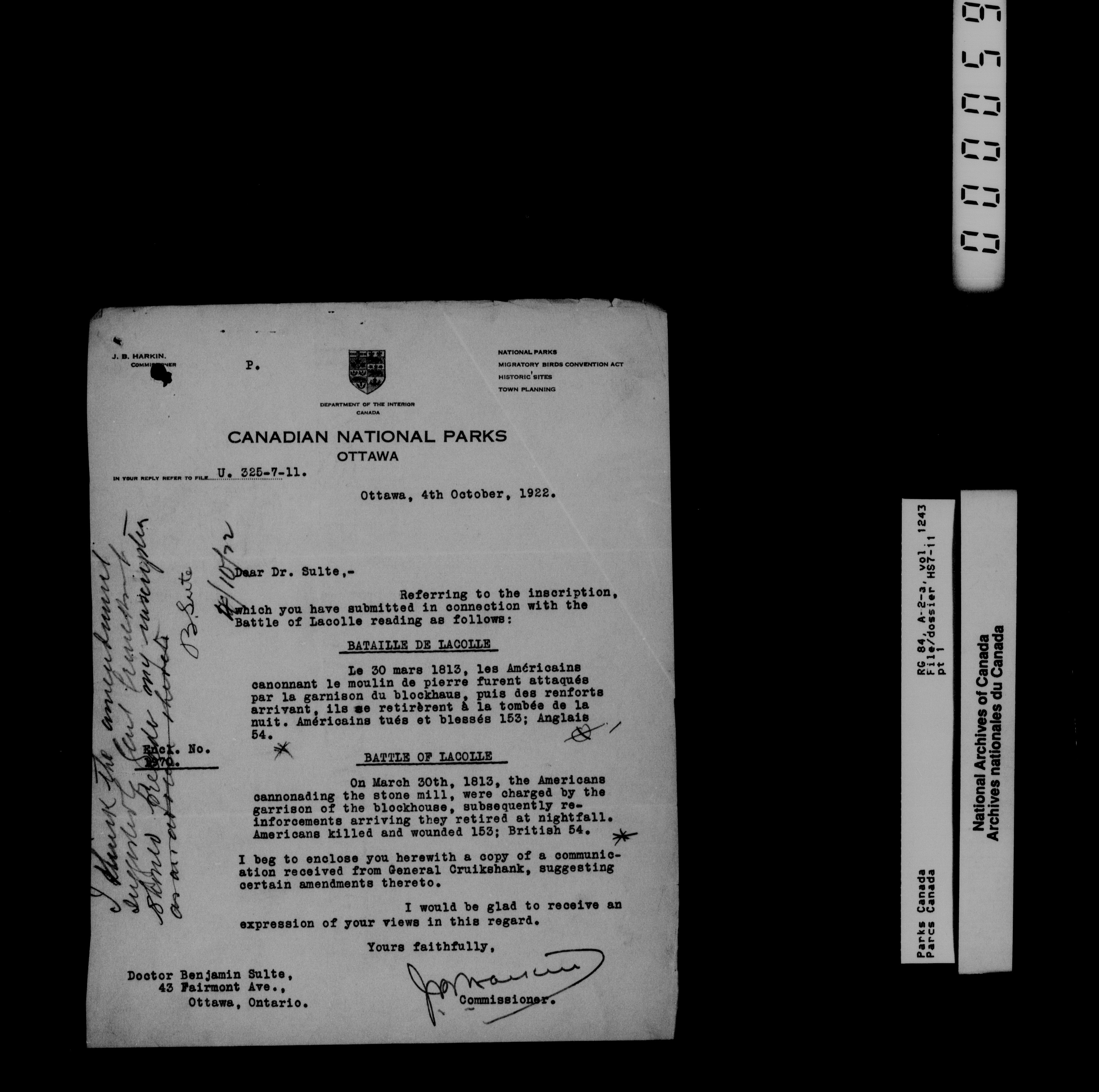 Department of Canadian Heritage, Canadian Parks Service : Park/subject classification system - 14016
