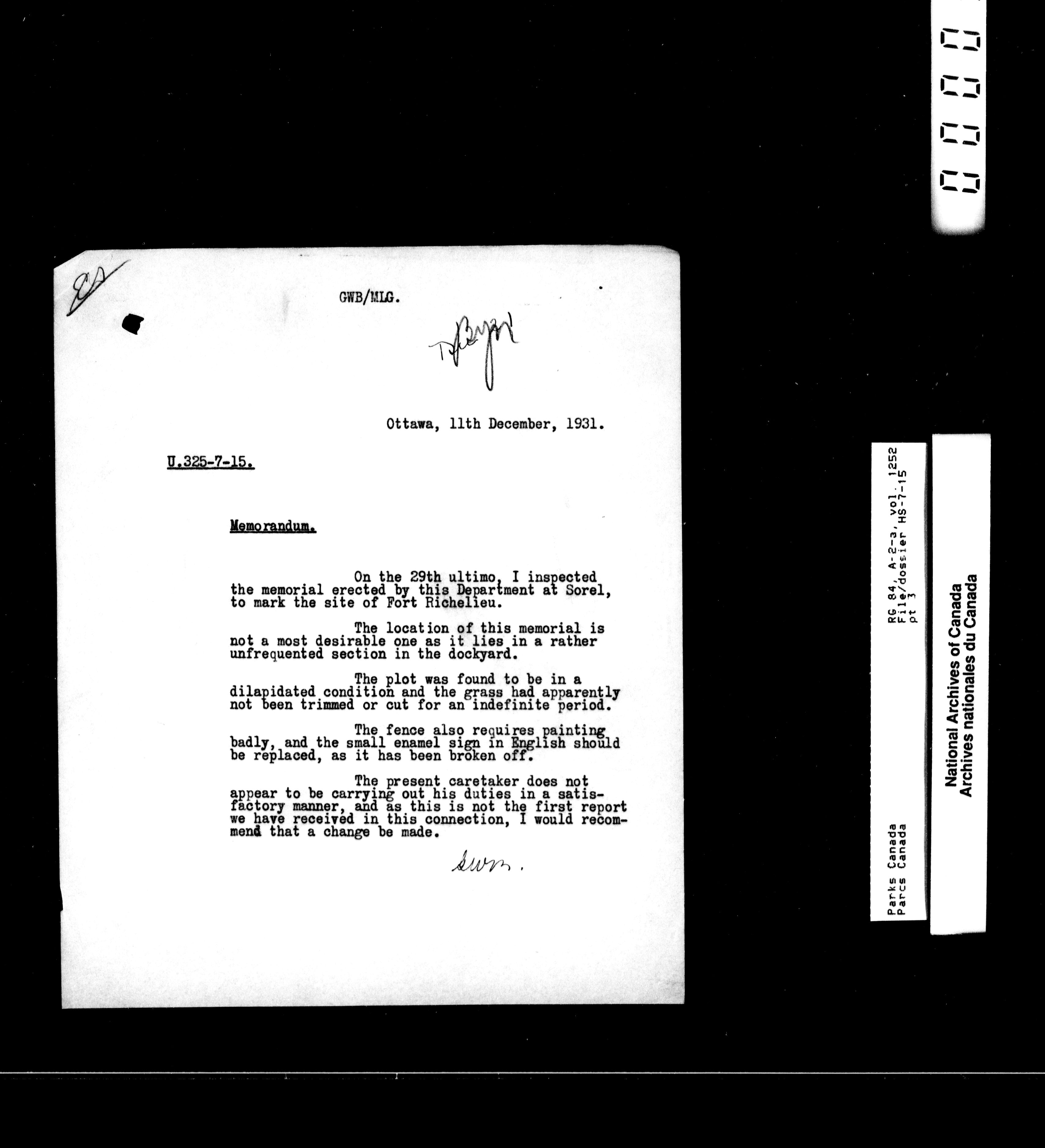 Department of Canadian Heritage, Canadian Parks Service : Park/subject classification system : T-14025