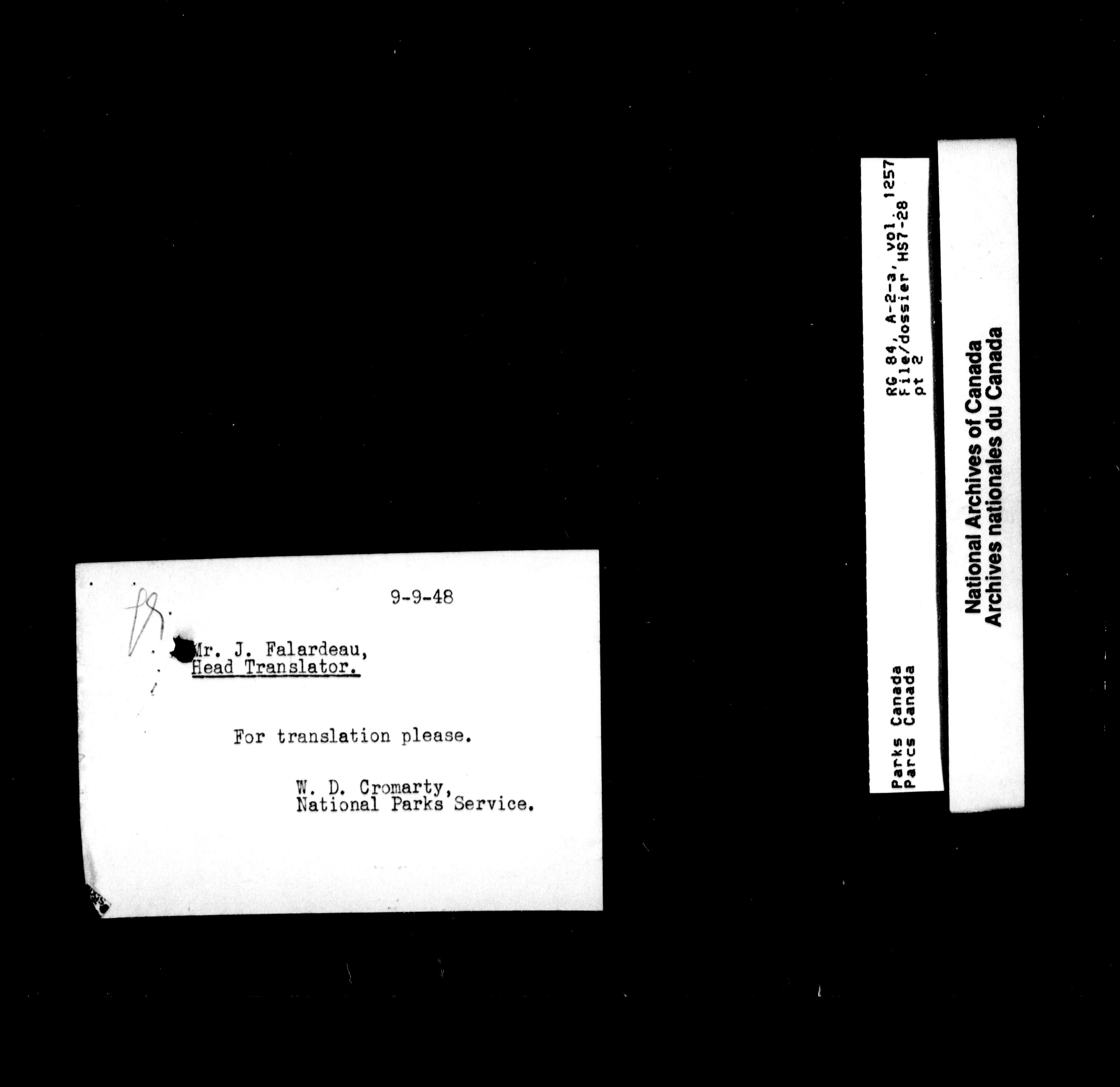 Department of Canadian Heritage, Canadian Parks Service : Park/subject classification system - 14029