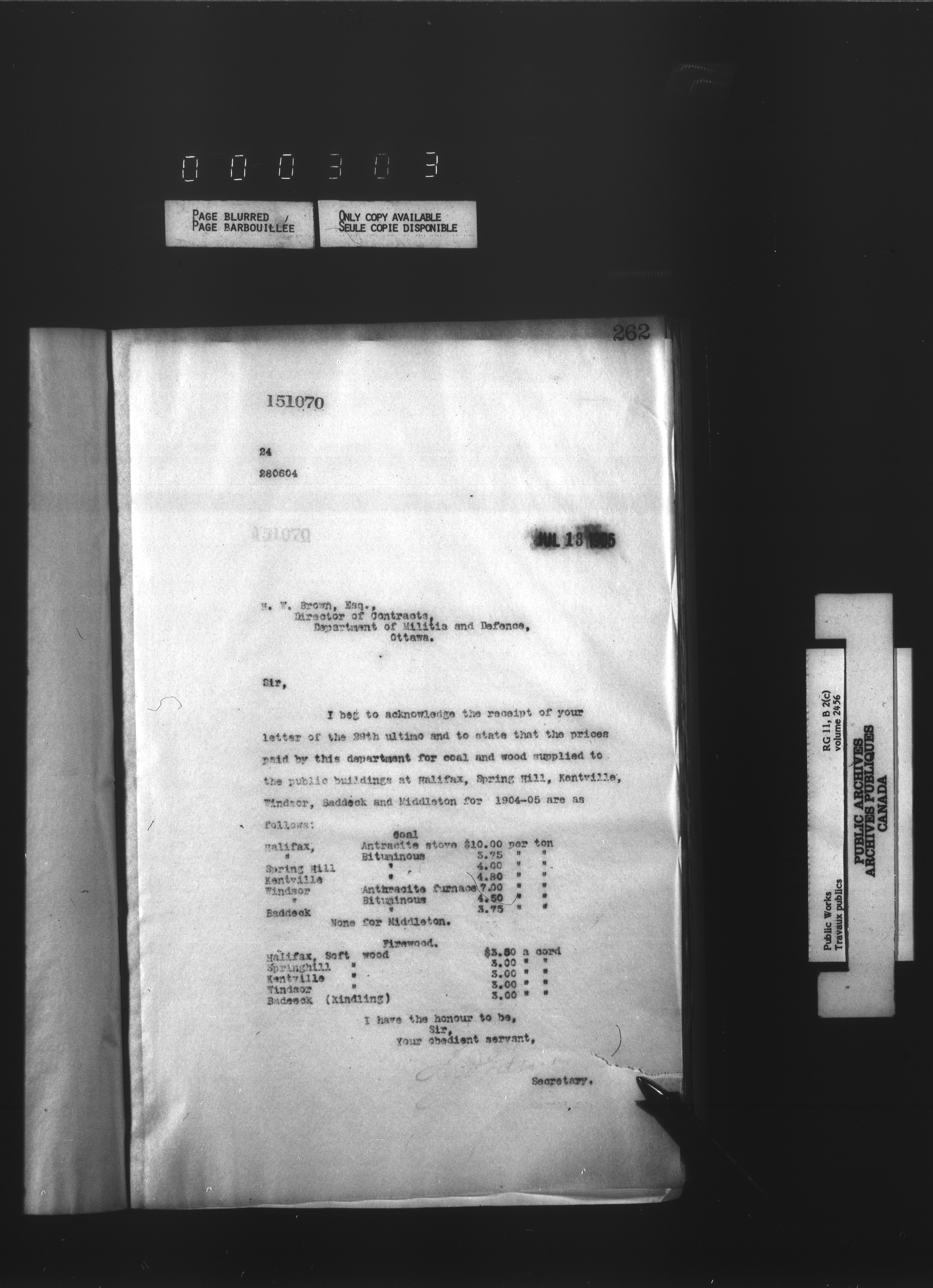Department of Public Works : Outgoing Numbered Correspondence, 1879-1912 - 1403