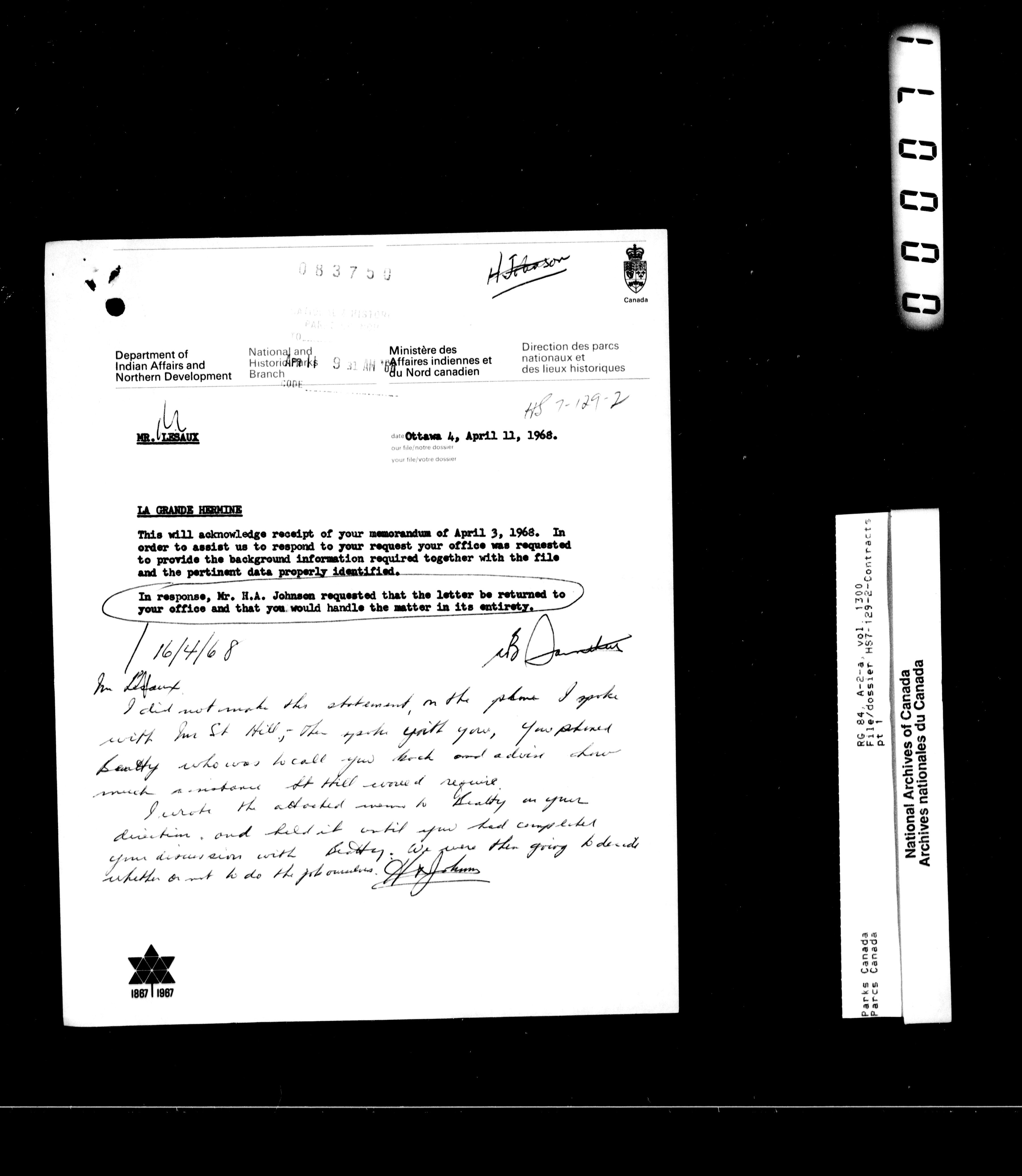 Department of Canadian Heritage, Canadian Parks Service : Park/subject classification system - 14066