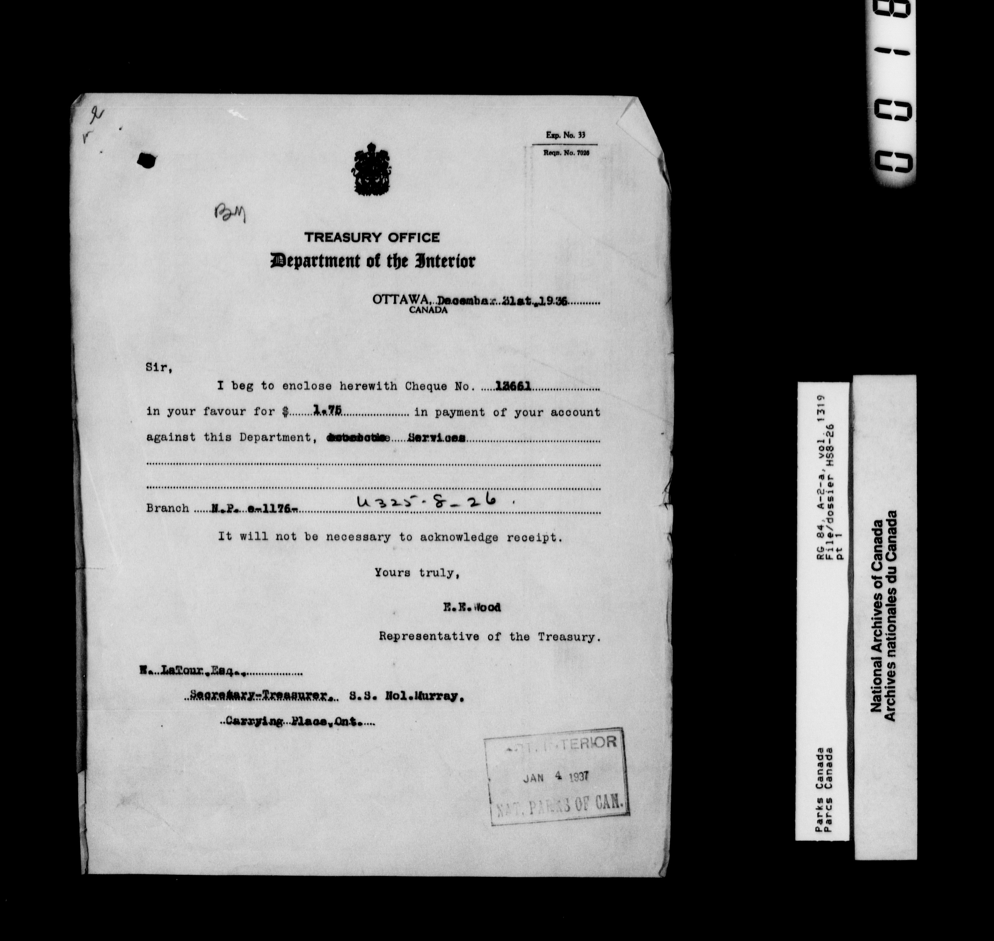 Department of Canadian Heritage, Canadian Parks Service : Park/subject classification system - 14081