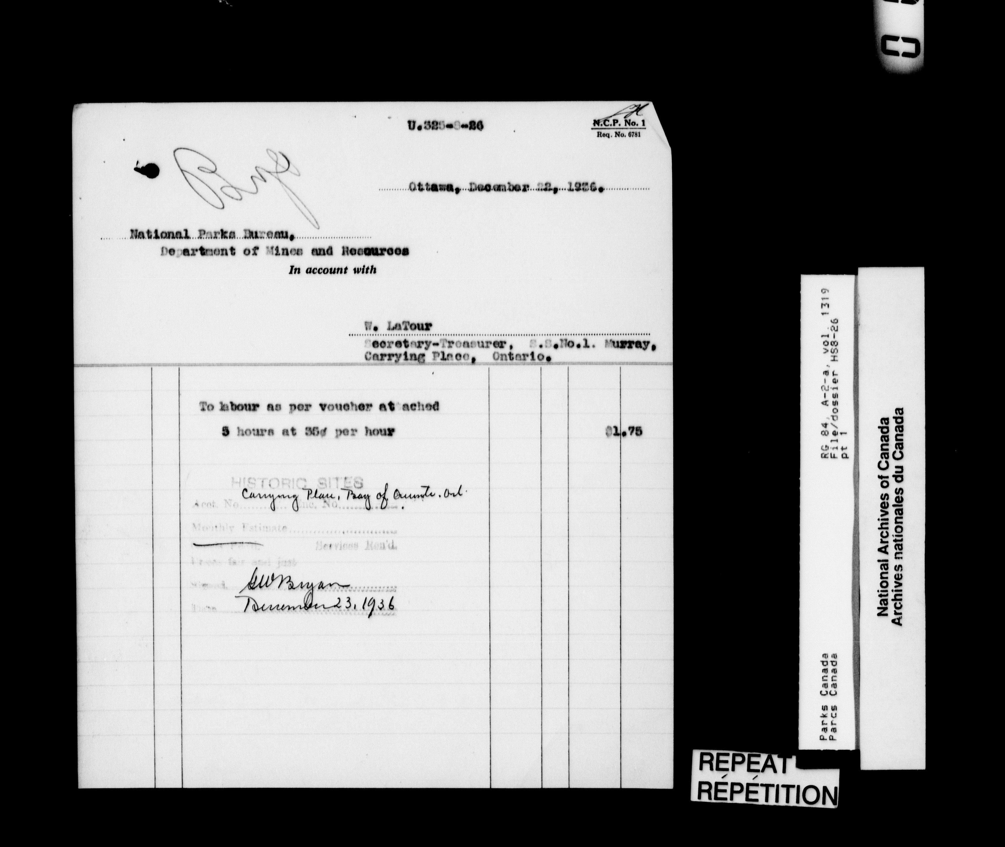 Department of Canadian Heritage, Canadian Parks Service : Park/subject classification system : T-14081