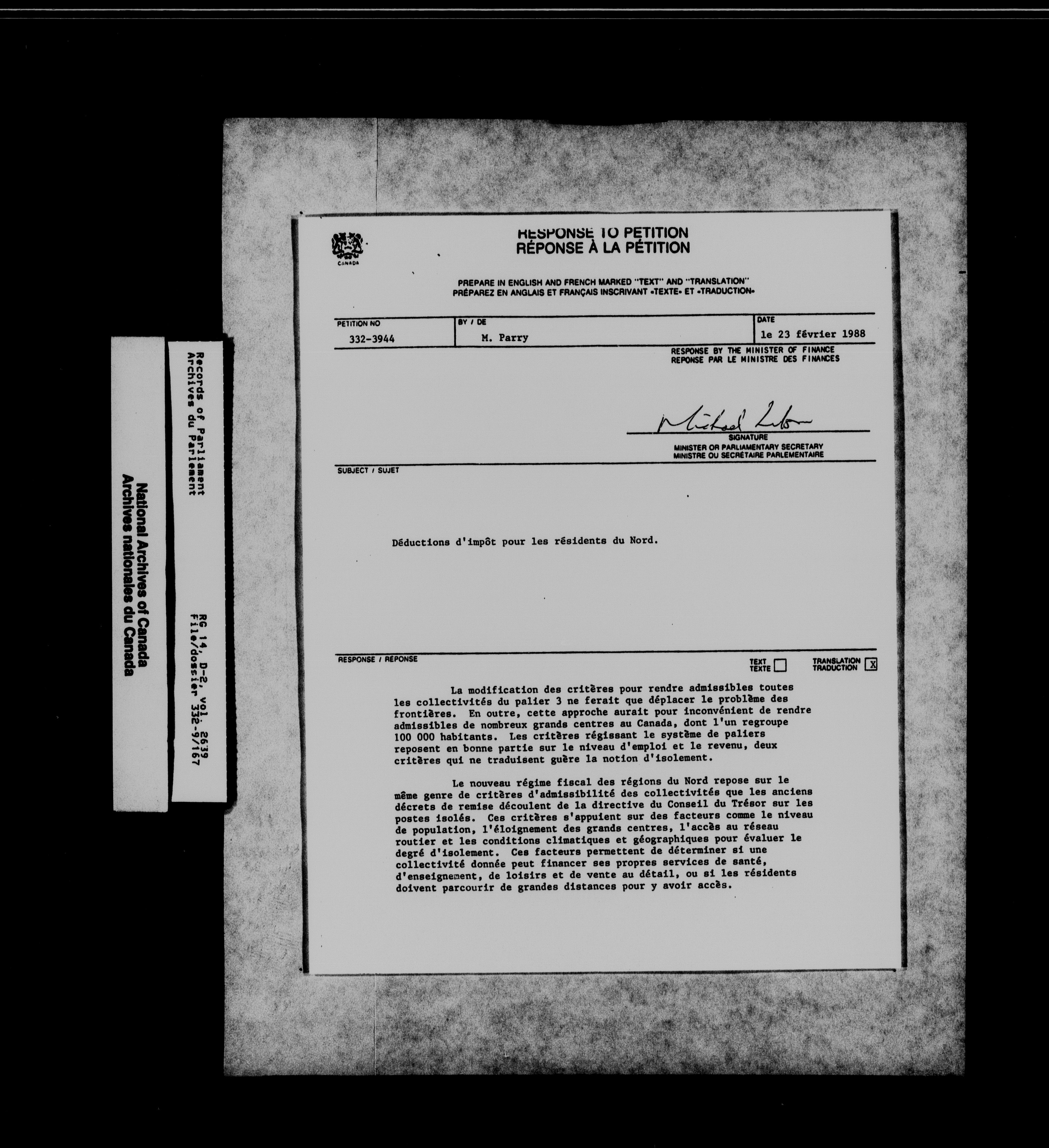 Unpublished sessional papers - 14102