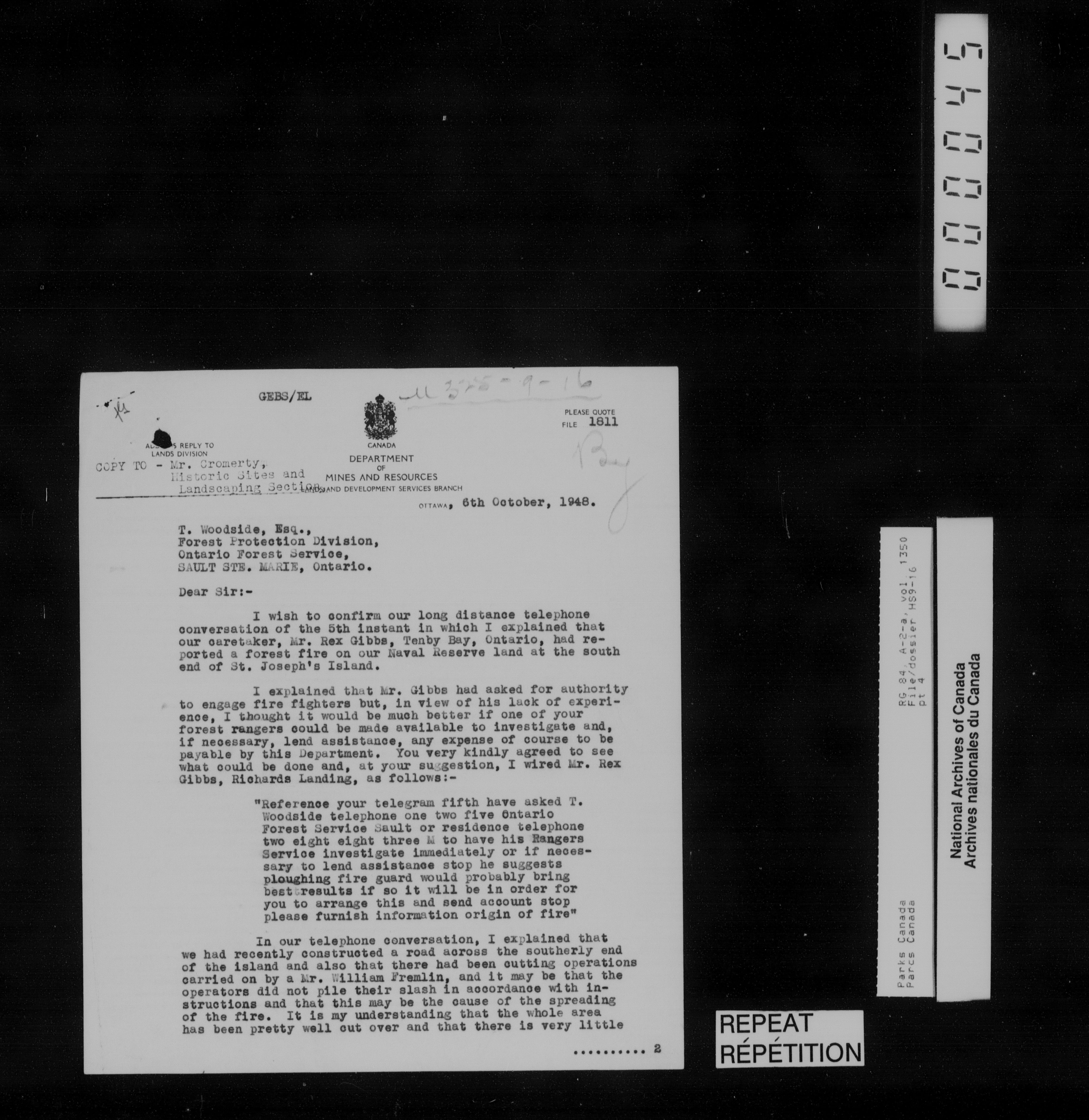 Department of Canadian Heritage, Canadian Parks Service : Park/subject classification system : T-14122