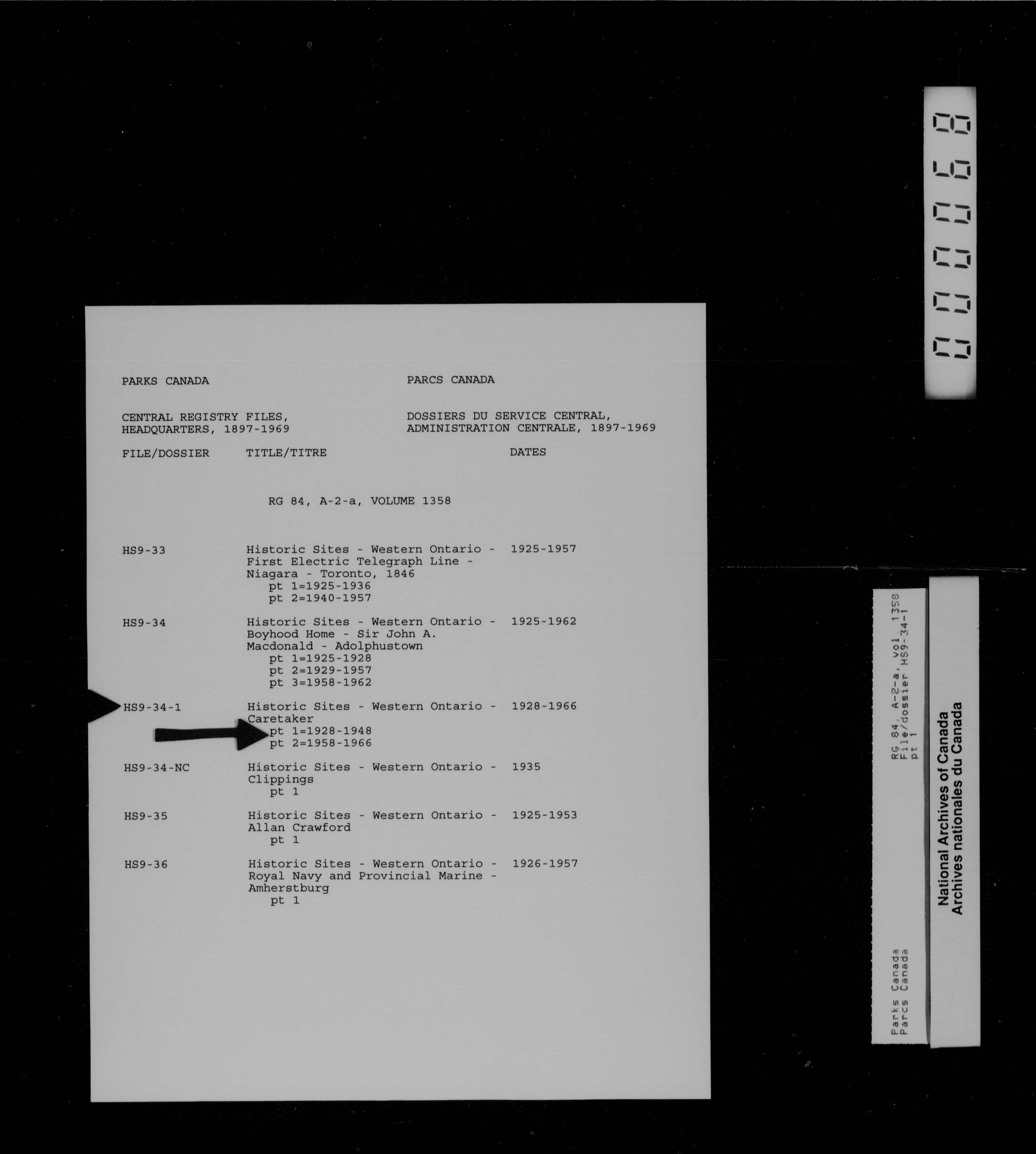 Department of Canadian Heritage, Canadian Parks Service : Park/subject classification system - 14130