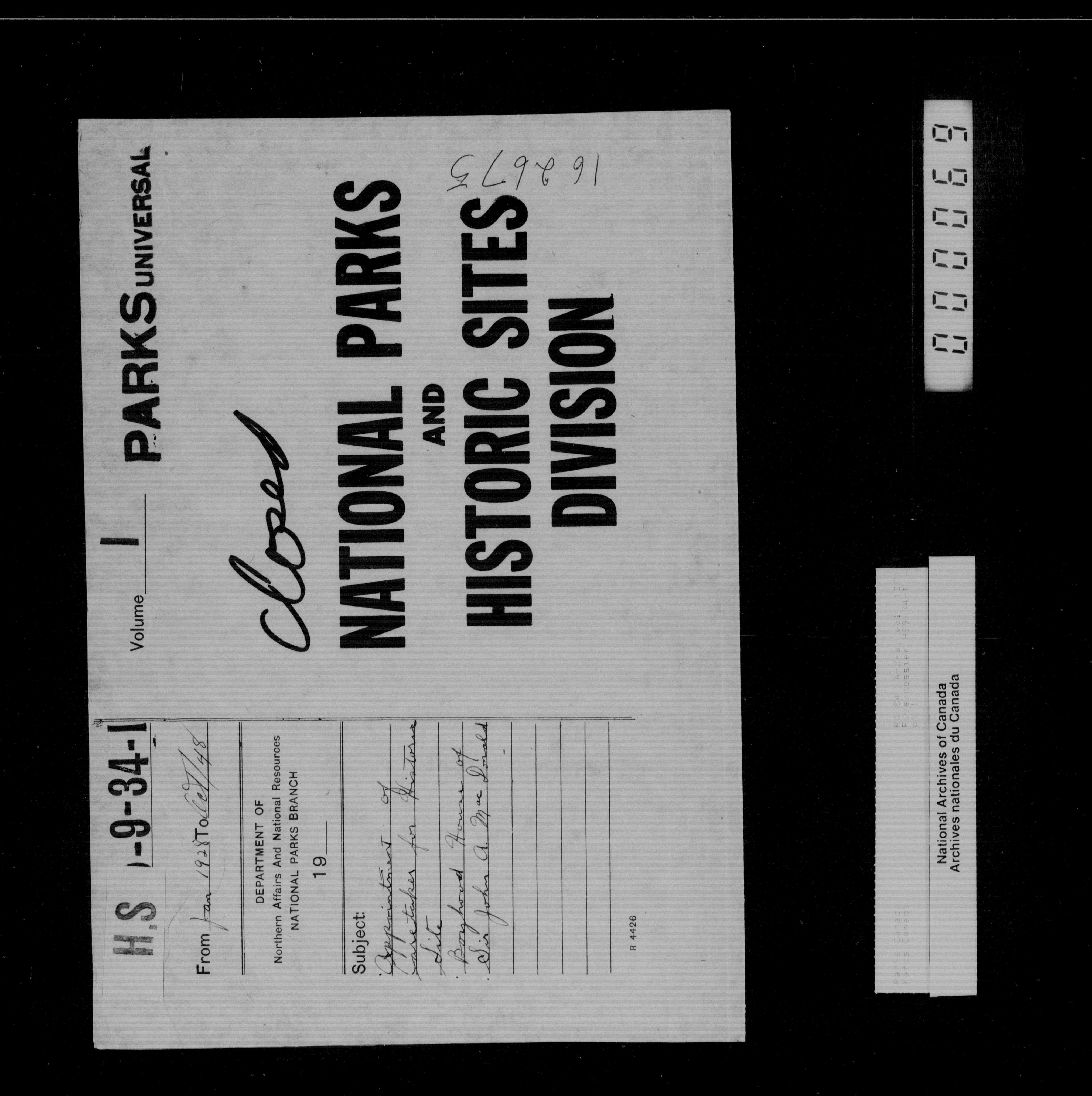 Department of Canadian Heritage, Canadian Parks Service : Park/subject classification system - 14130