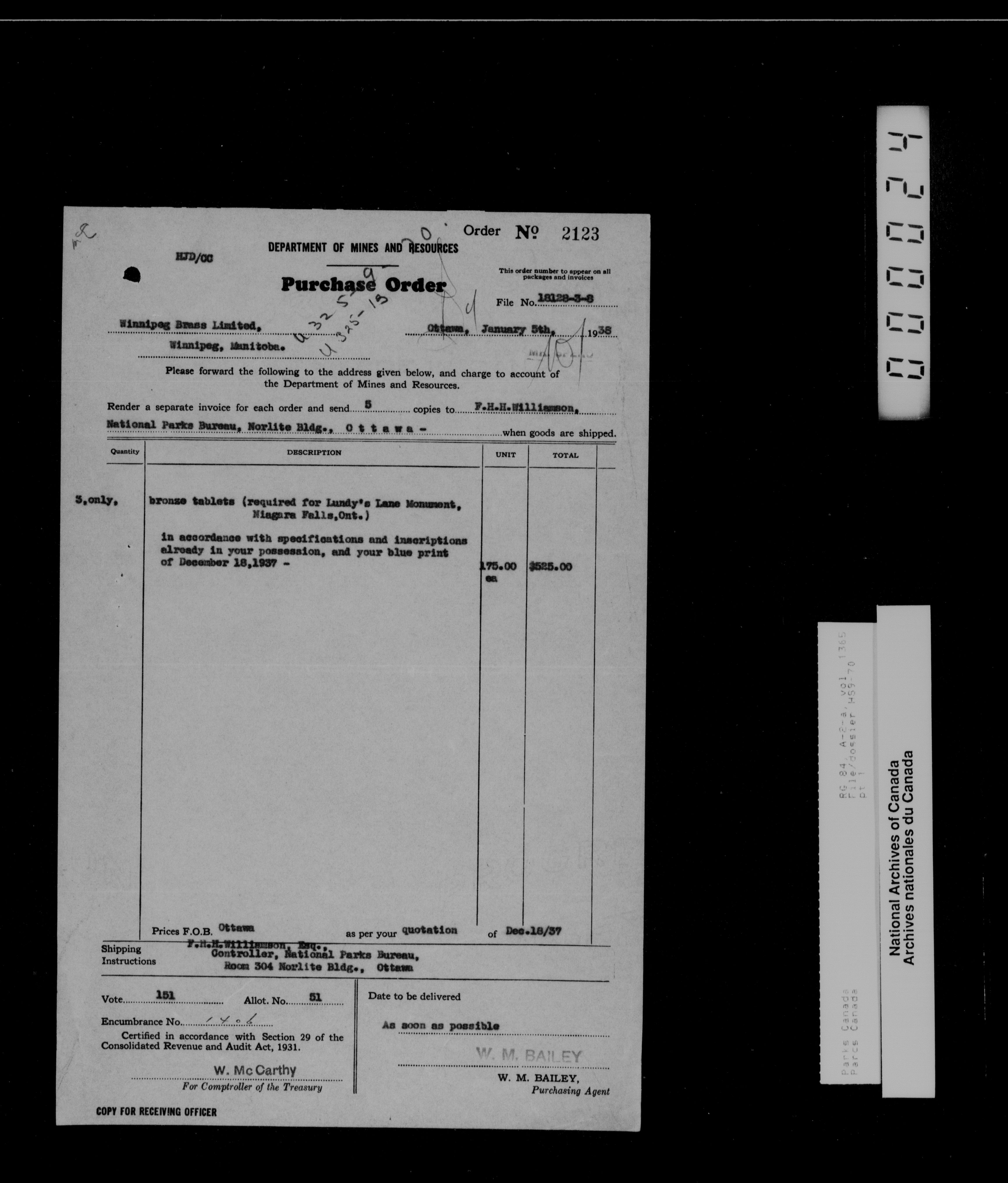 Department of Canadian Heritage, Canadian Parks Service : Park/subject classification system : T-14135