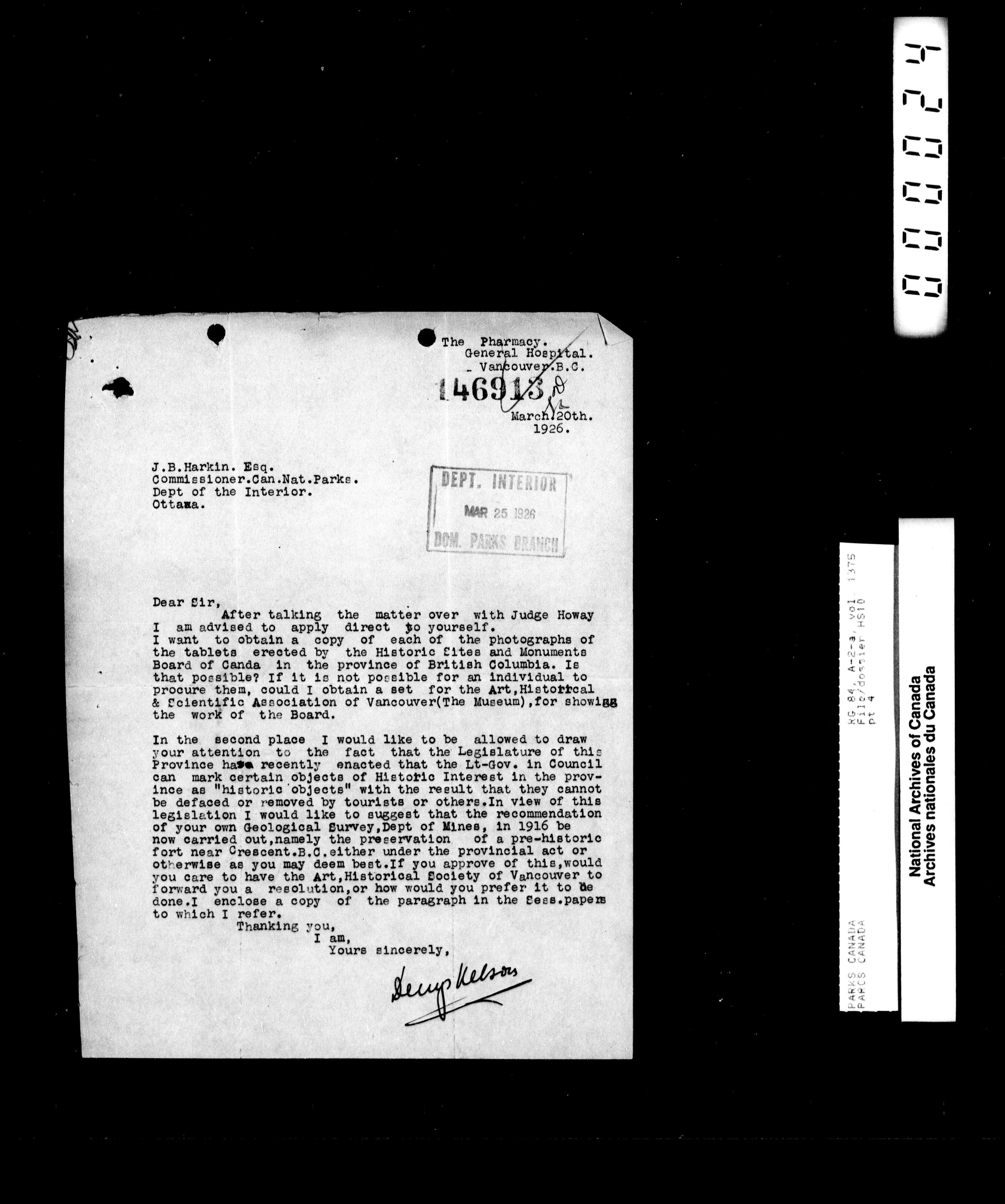 Department of Canadian Heritage, Canadian Parks Service : Park/subject classification system : T-14144
