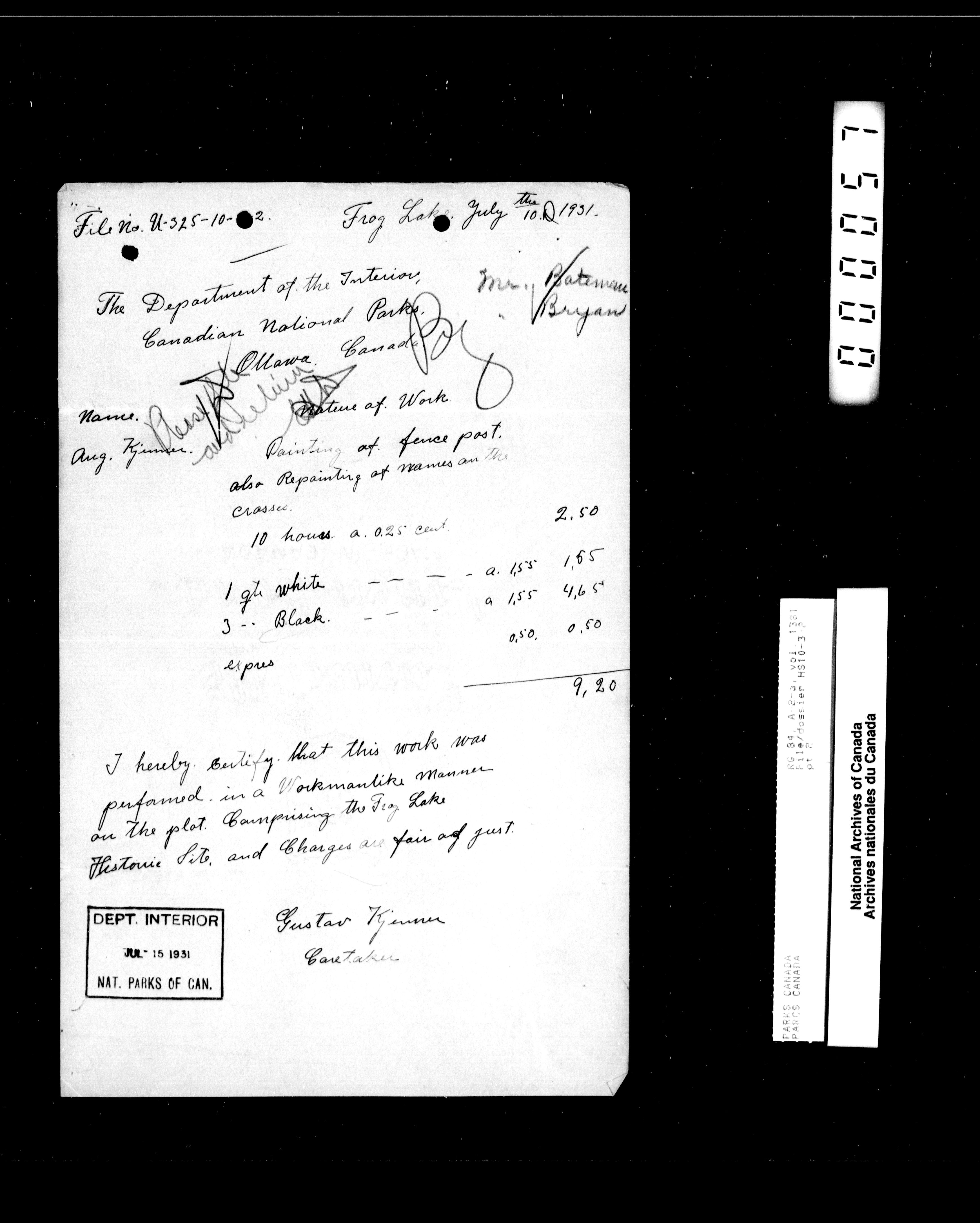 Department of Canadian Heritage, Canadian Parks Service : Park/subject classification system : T-14149