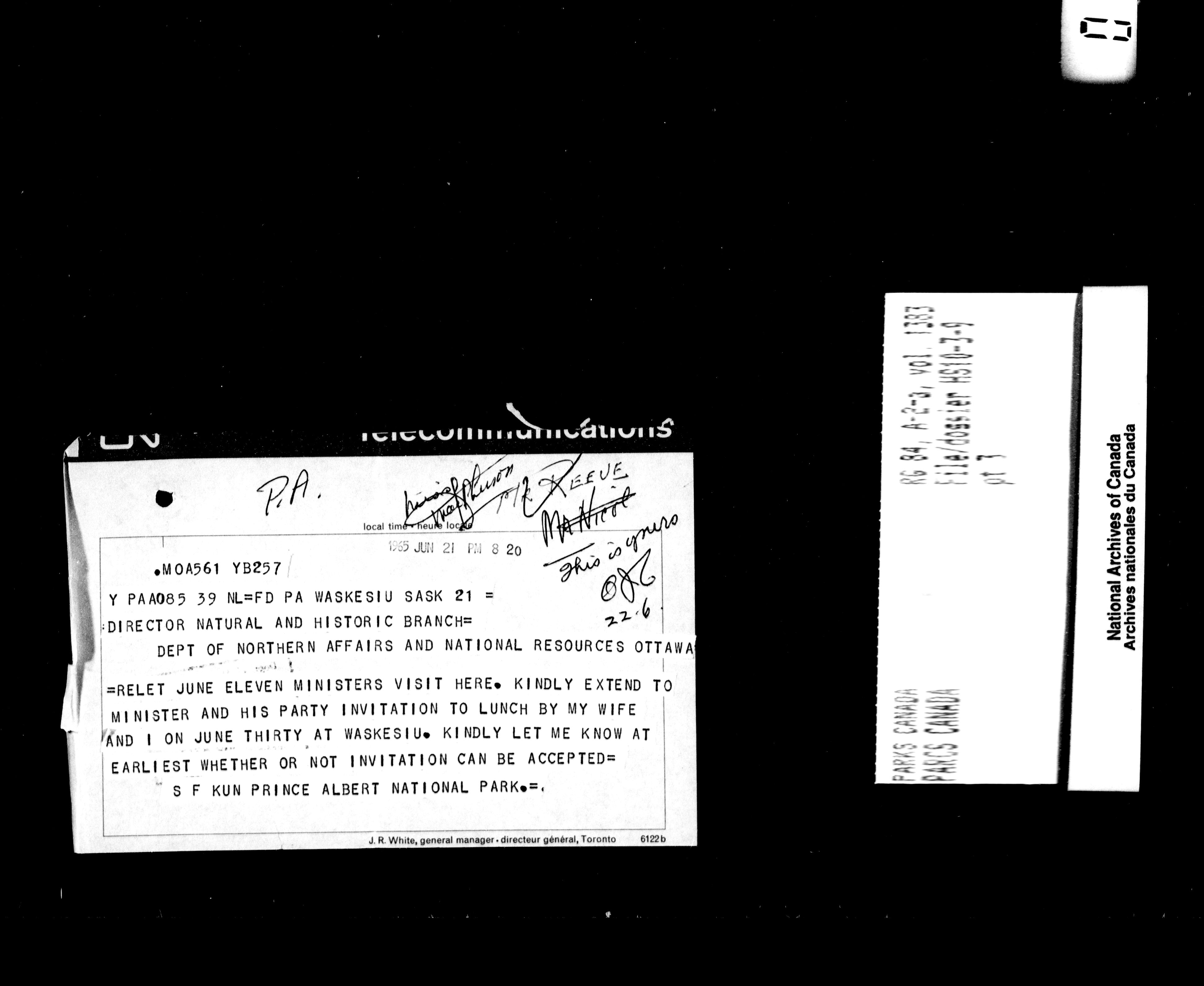 Department of Canadian Heritage, Canadian Parks Service : Park/subject classification system : T-14151