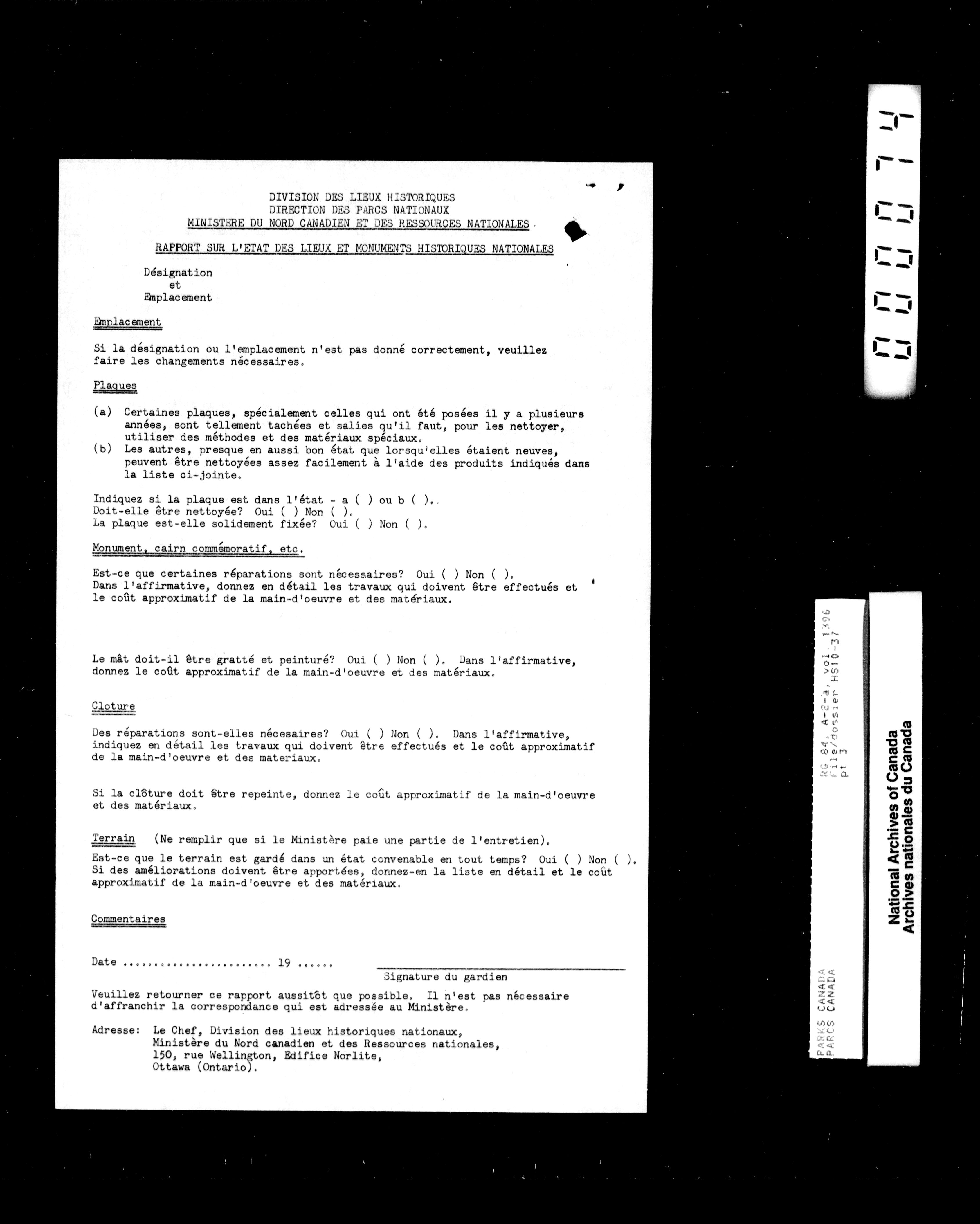 Department of Canadian Heritage, Canadian Parks Service : Park/subject classification system - 14162