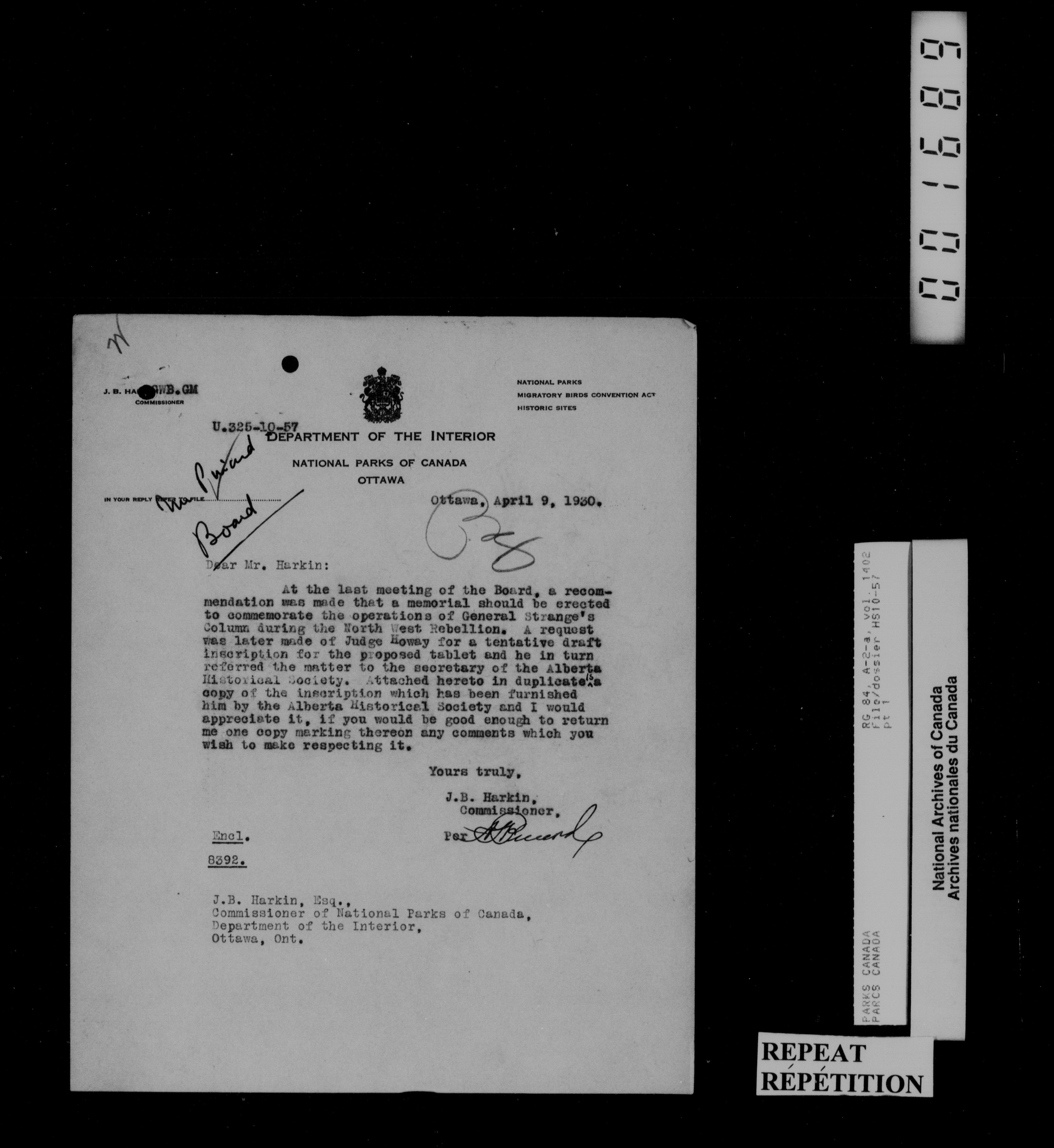 Department of Canadian Heritage, Canadian Parks Service : Park/subject classification system - 14166