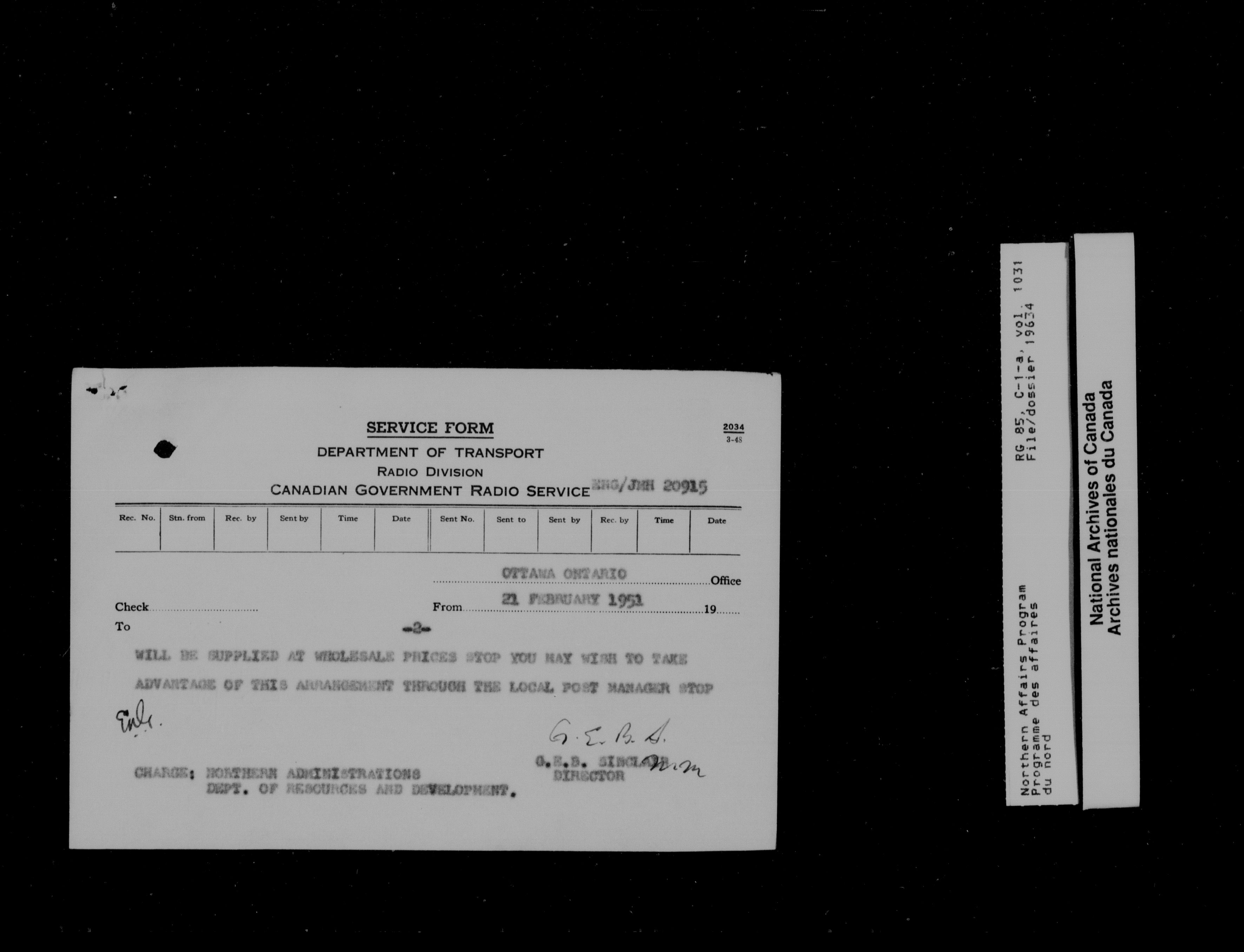 Department of Indian Affairs : Northwest Territories and Yukon Branch, Central Registry files - 14205