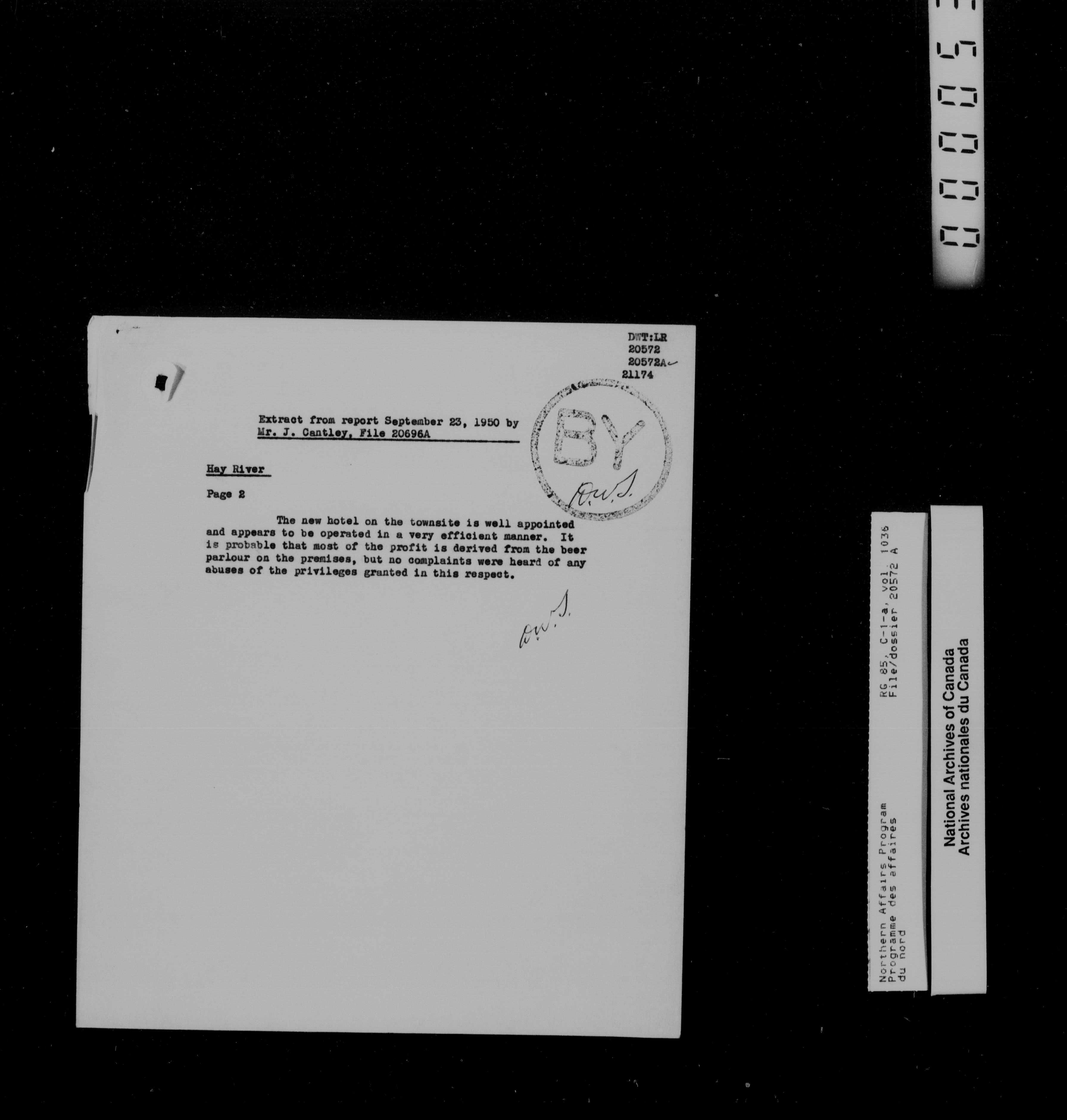Department of Indian Affairs : Northwest Territories and Yukon Branch, Central Registry files - 14209