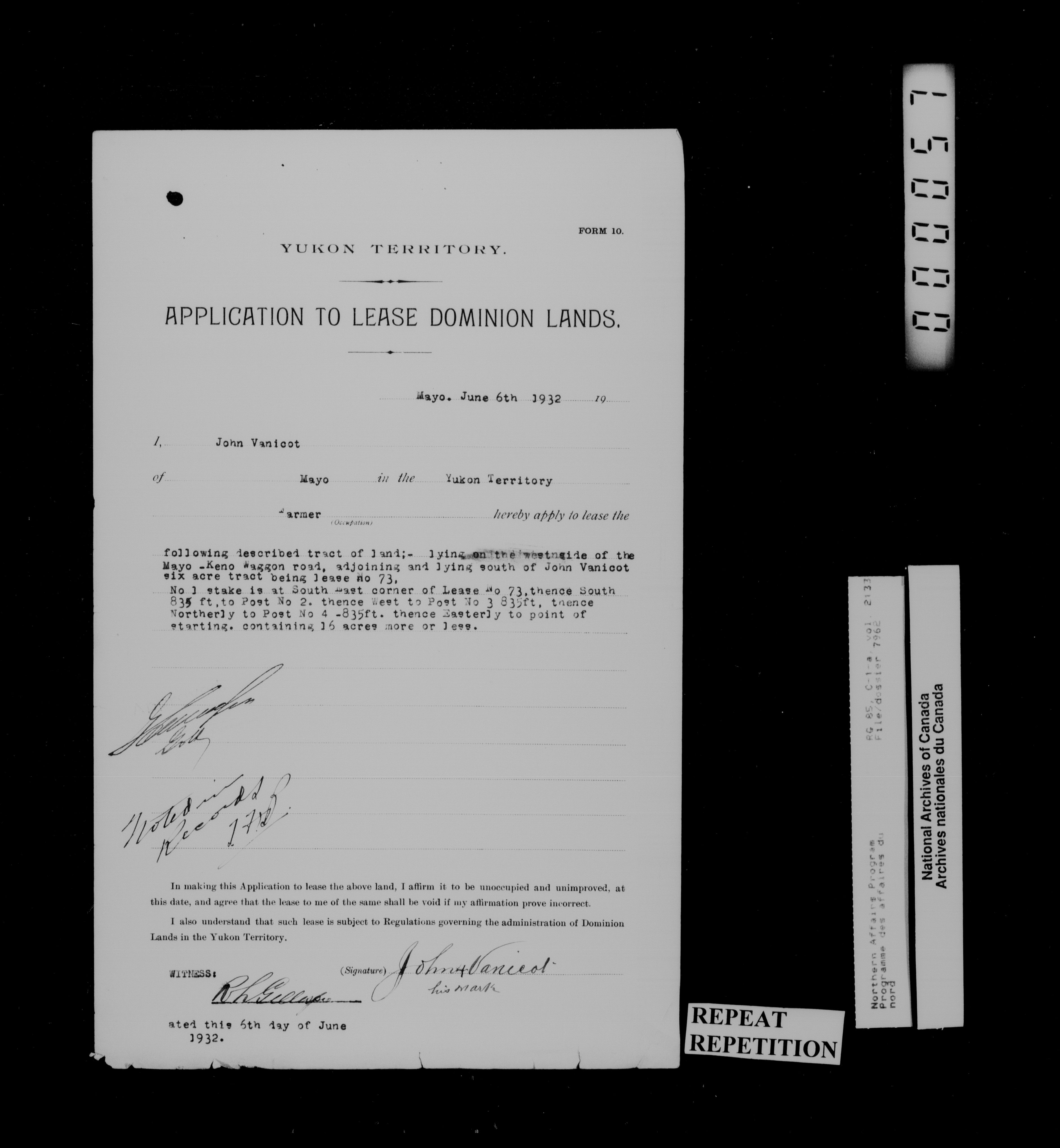 Department of Indian Affairs : Northwest Territories and Yukon Branch, Central Registry files - 14217