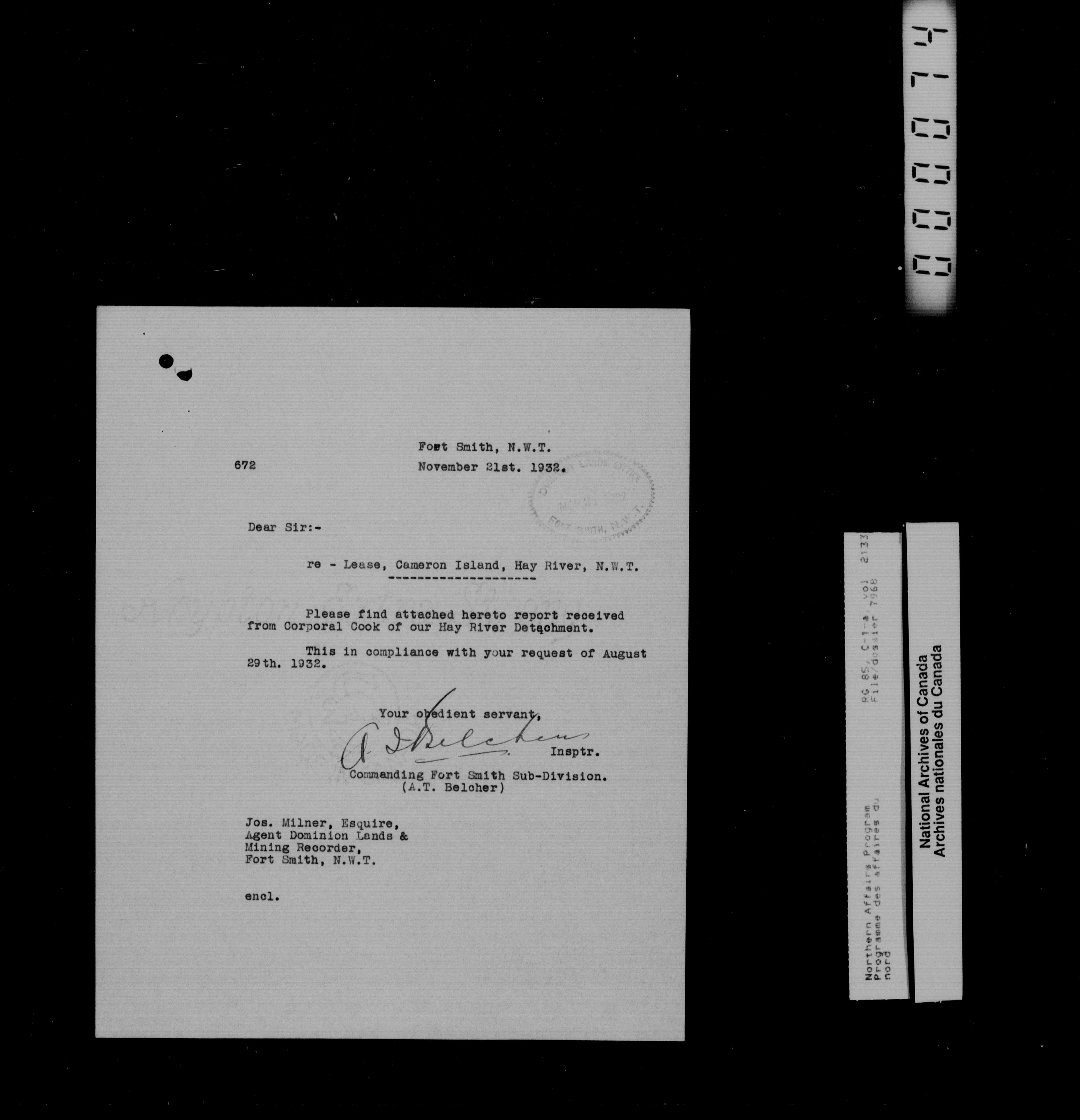 Department of Indian Affairs : Northwest Territories and Yukon Branch, Central Registry files - 14217
