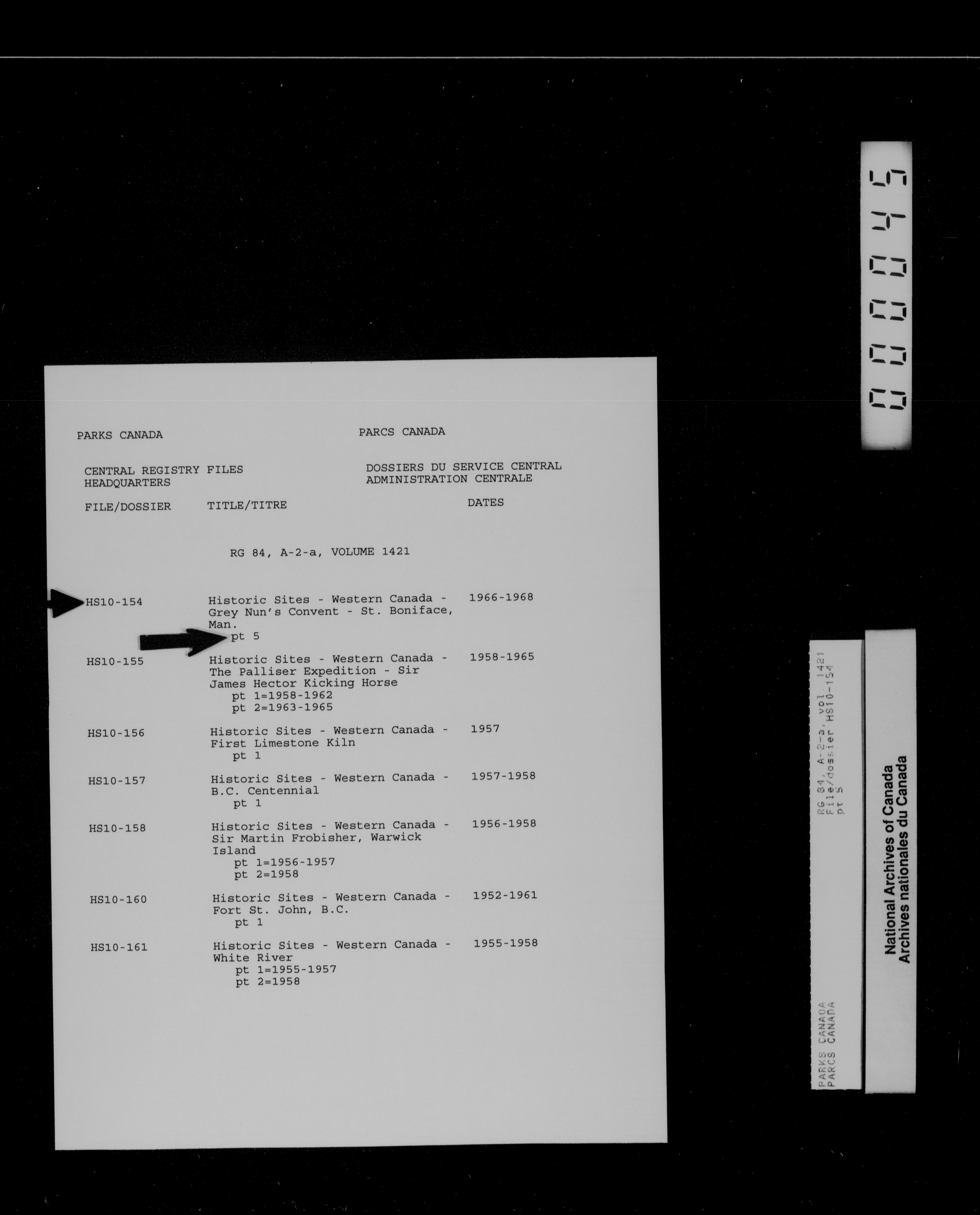 Department of Canadian Heritage, Canadian Parks Service : Park/subject classification system - 14246