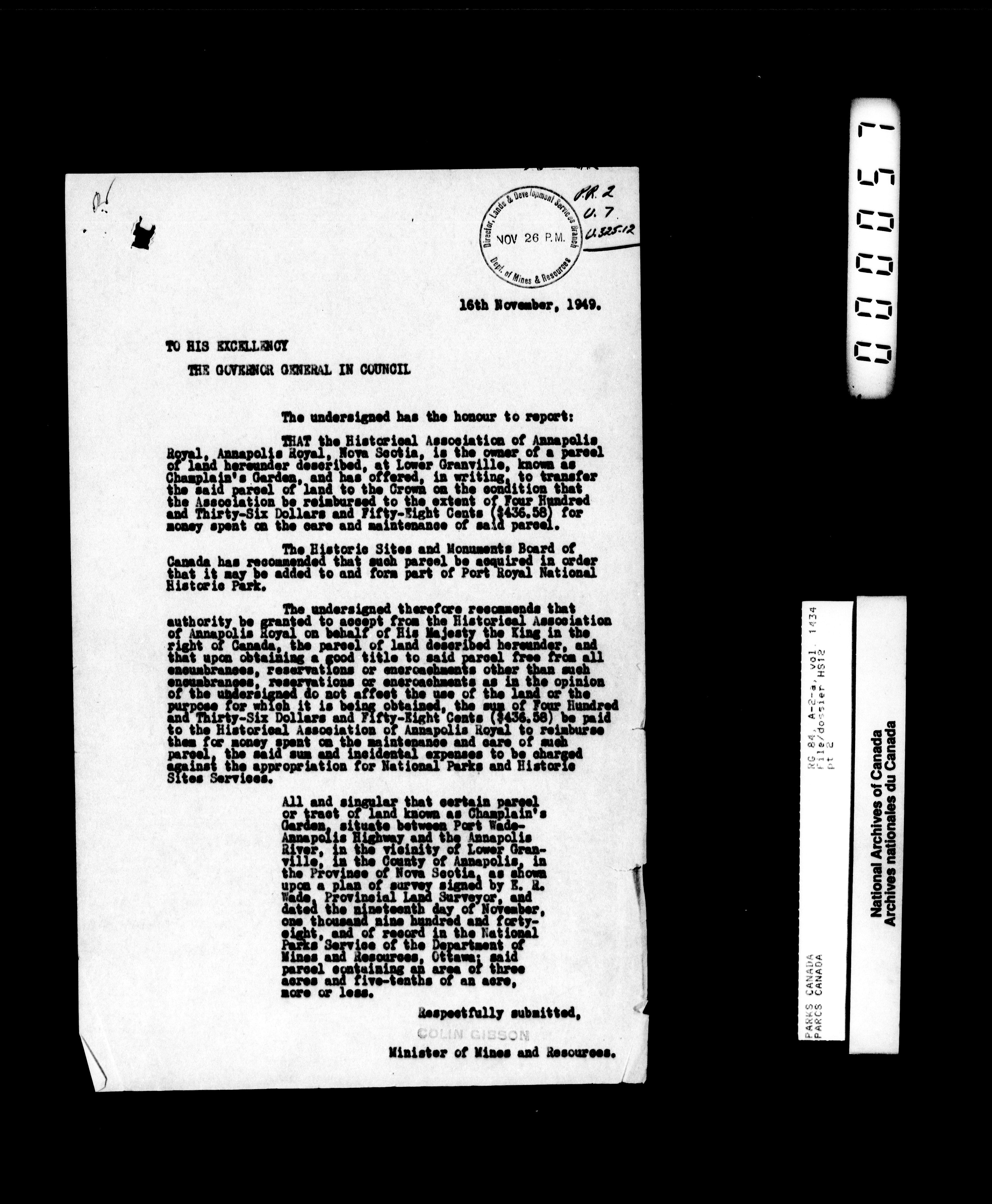 Department of Canadian Heritage, Canadian Parks Service : Park/subject classification system : T-14259
