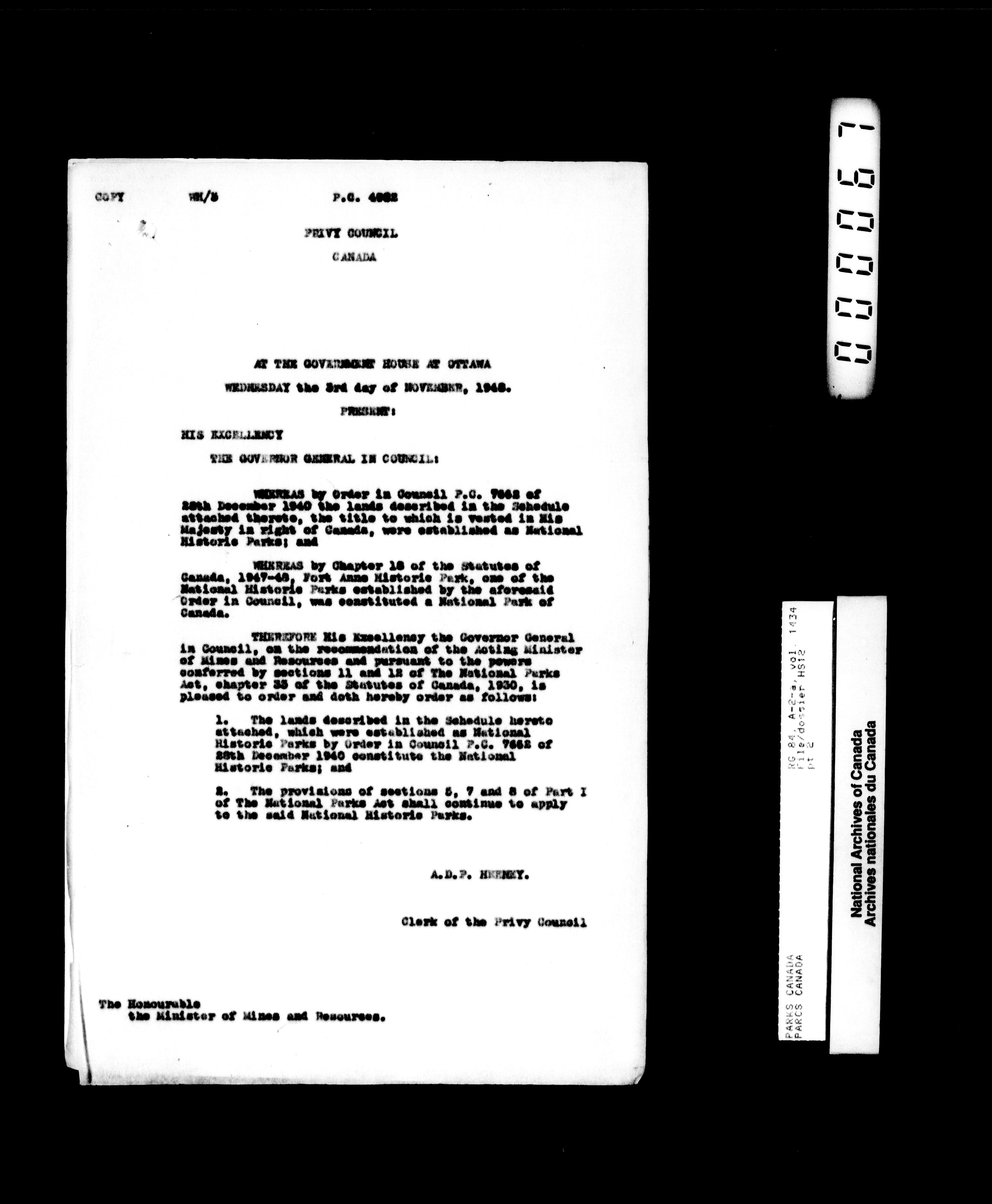 Department of Canadian Heritage, Canadian Parks Service : Park/subject classification system : T-14259
