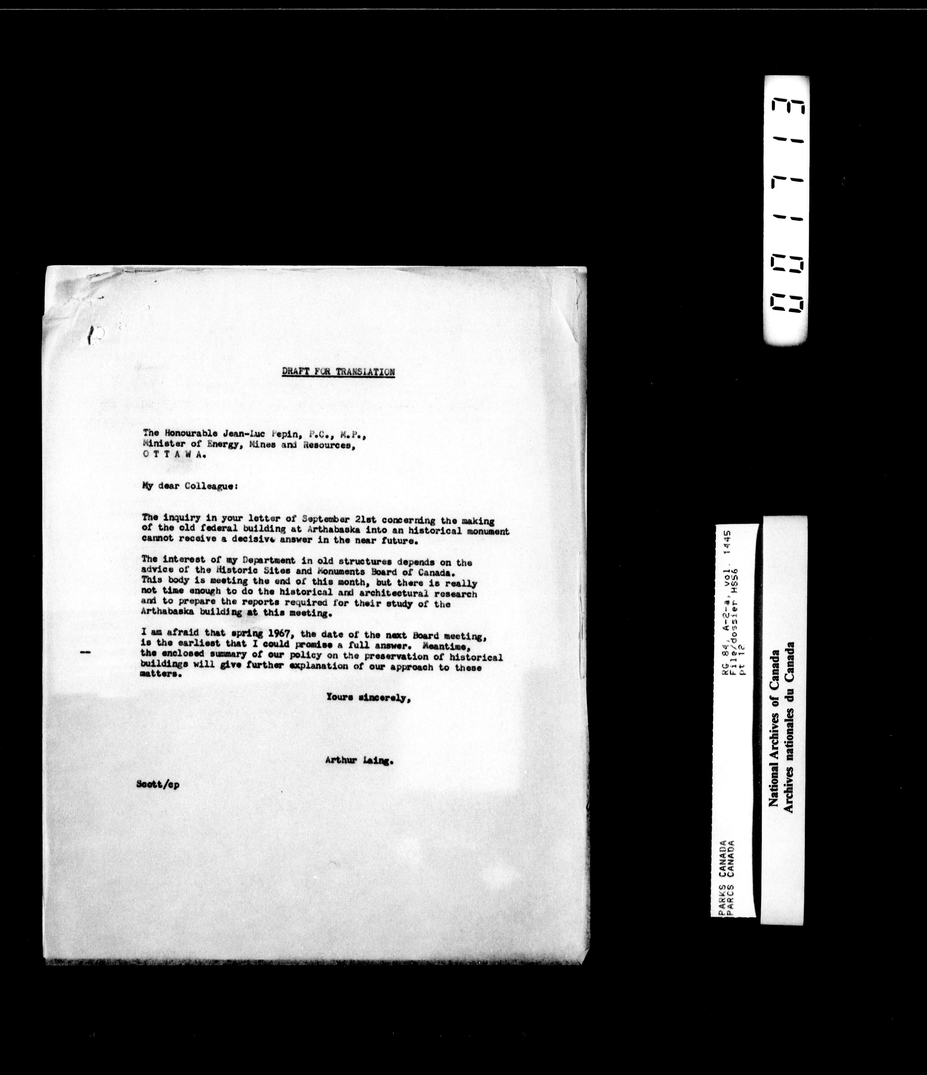 Department of Canadian Heritage, Canadian Parks Service : Park/subject classification system - 14269