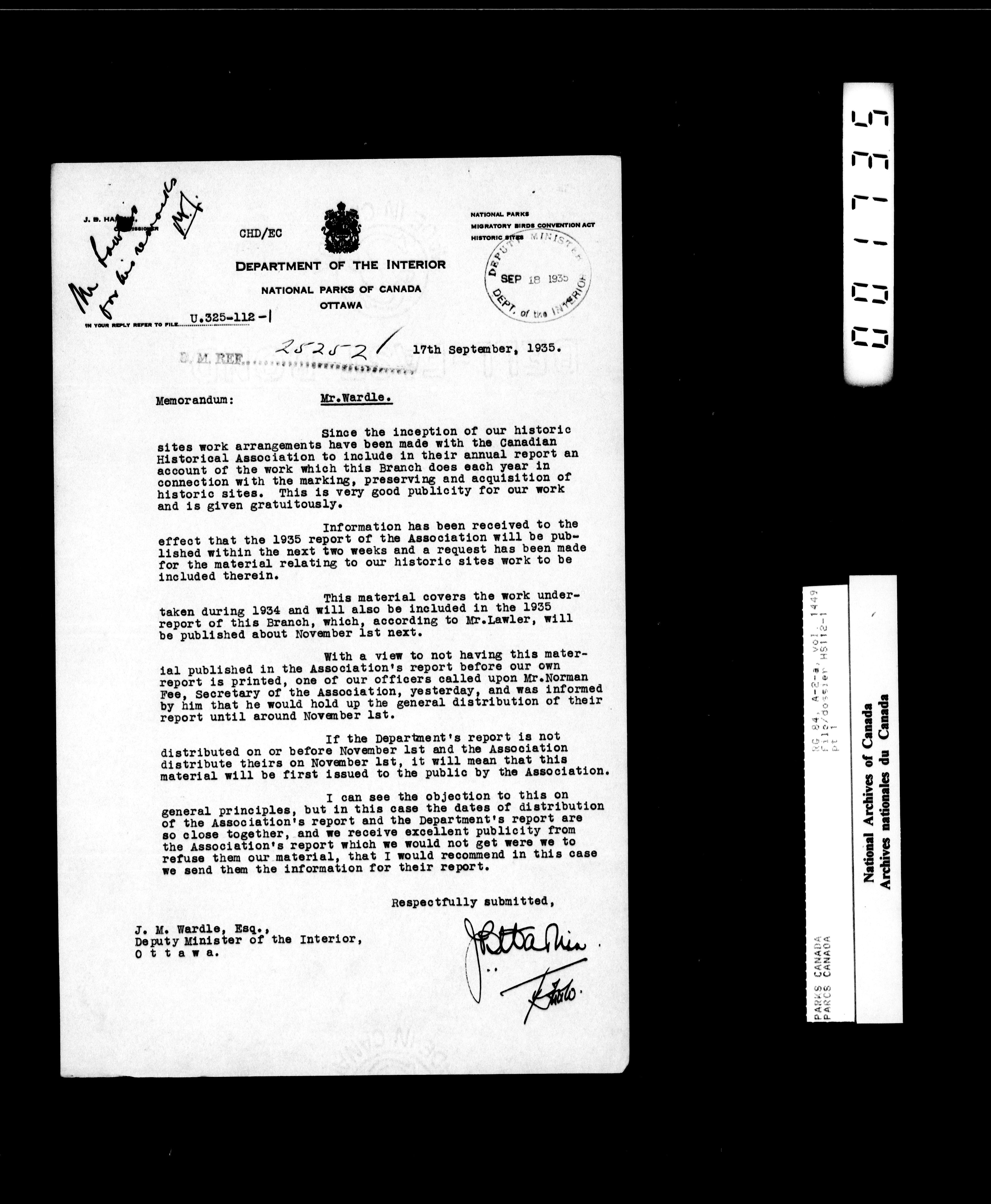 Department of Canadian Heritage, Canadian Parks Service : Park/subject classification system - 14274