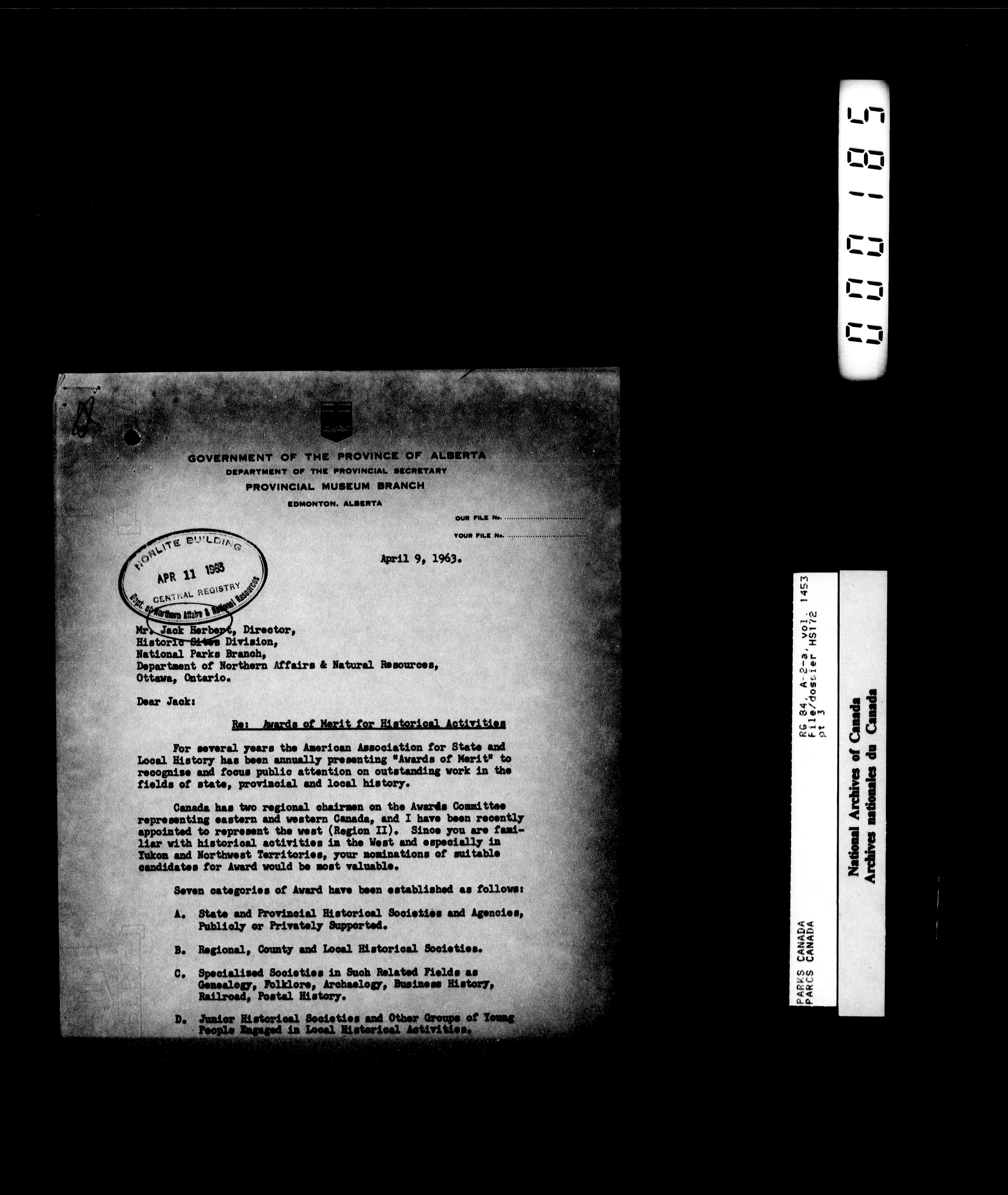 Department of Canadian Heritage, Canadian Parks Service : Park/subject classification system - 14280