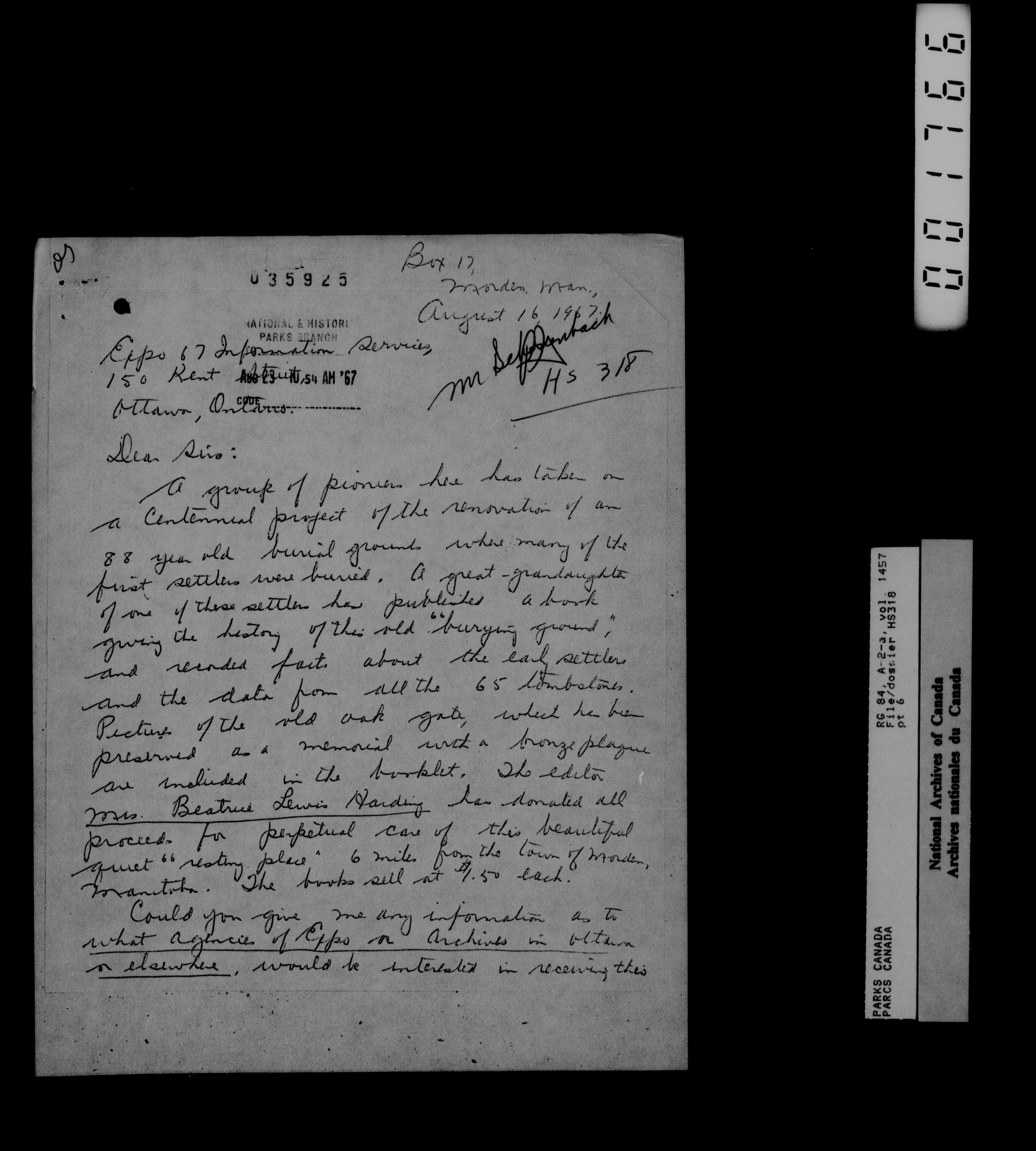 Department of Canadian Heritage, Canadian Parks Service : Park/subject classification system - 14282