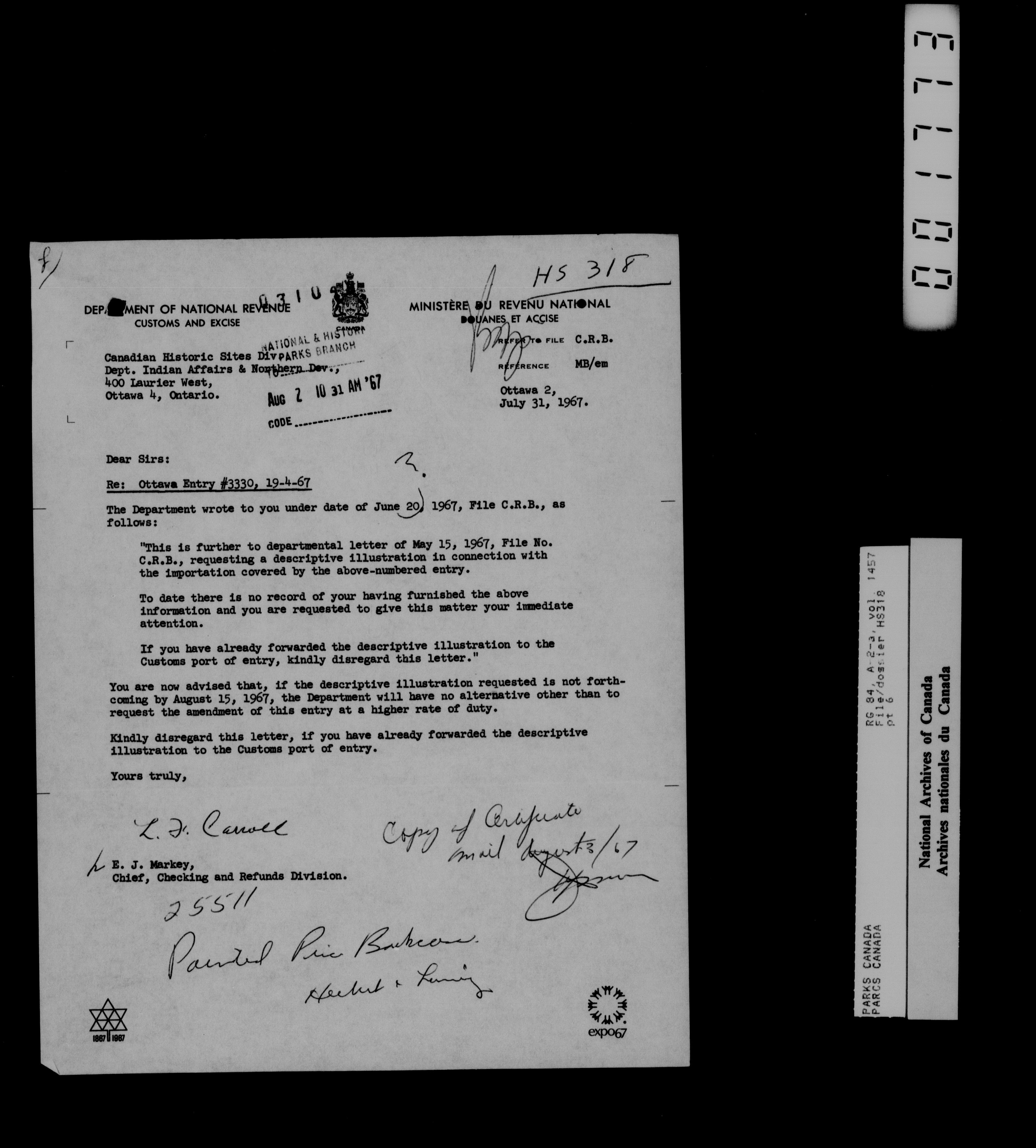 Department of Canadian Heritage, Canadian Parks Service : Park/subject classification system - 14282
