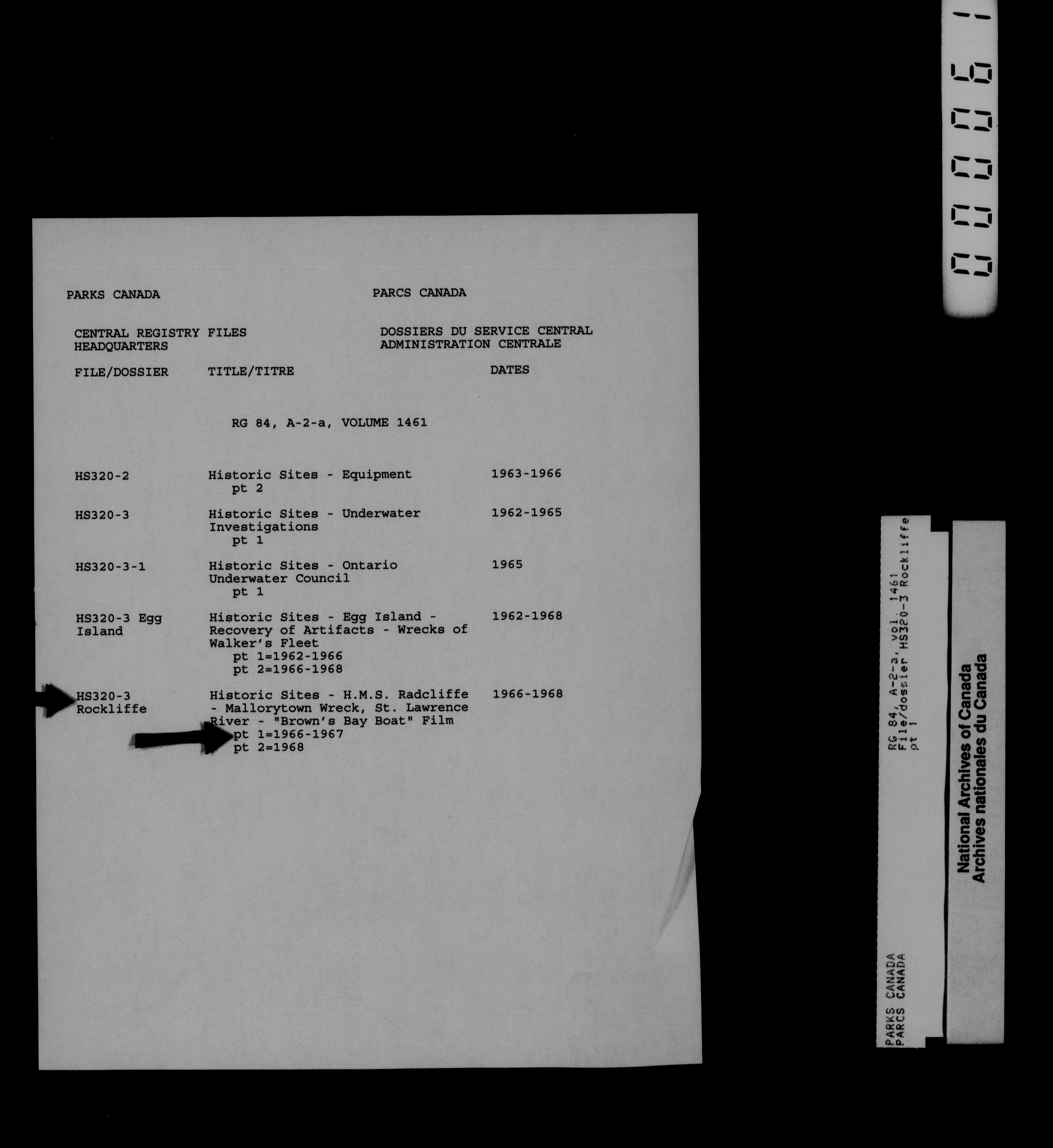 Department of Canadian Heritage, Canadian Parks Service : Park/subject classification system - 14287