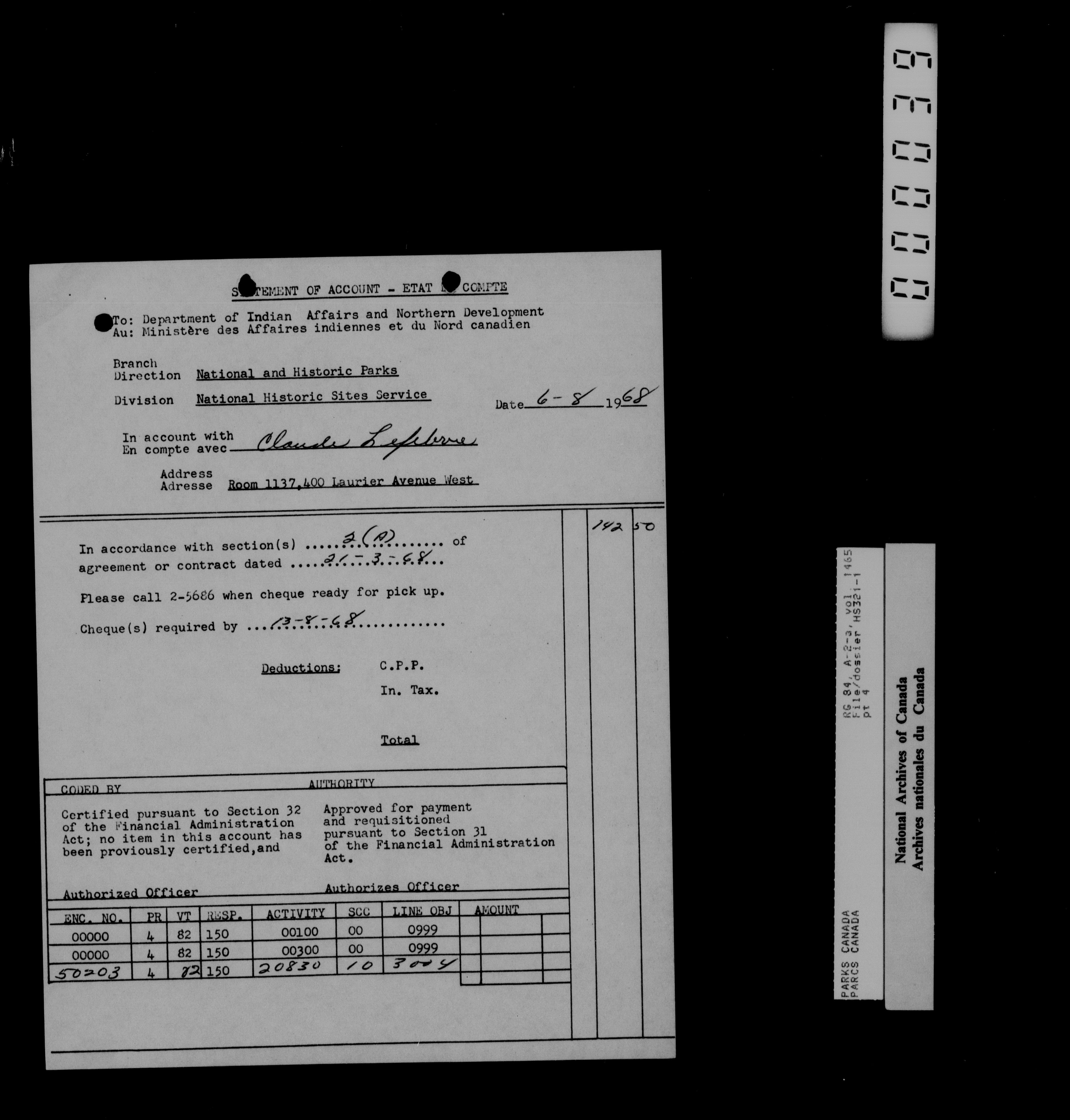 Department of Canadian Heritage, Canadian Parks Service : Park/subject classification system - 14289