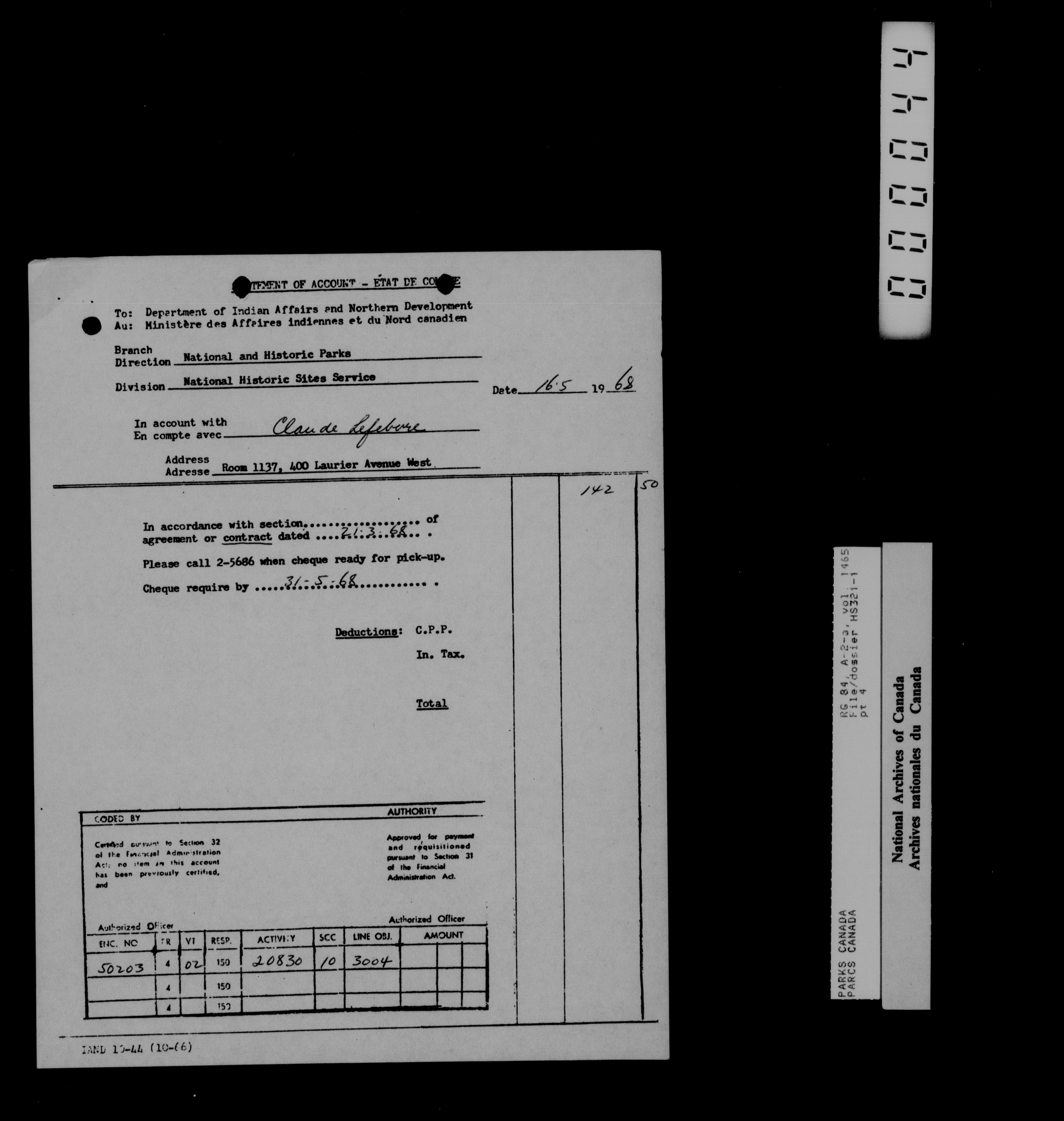 Department of Canadian Heritage, Canadian Parks Service : Park/subject classification system - 14289