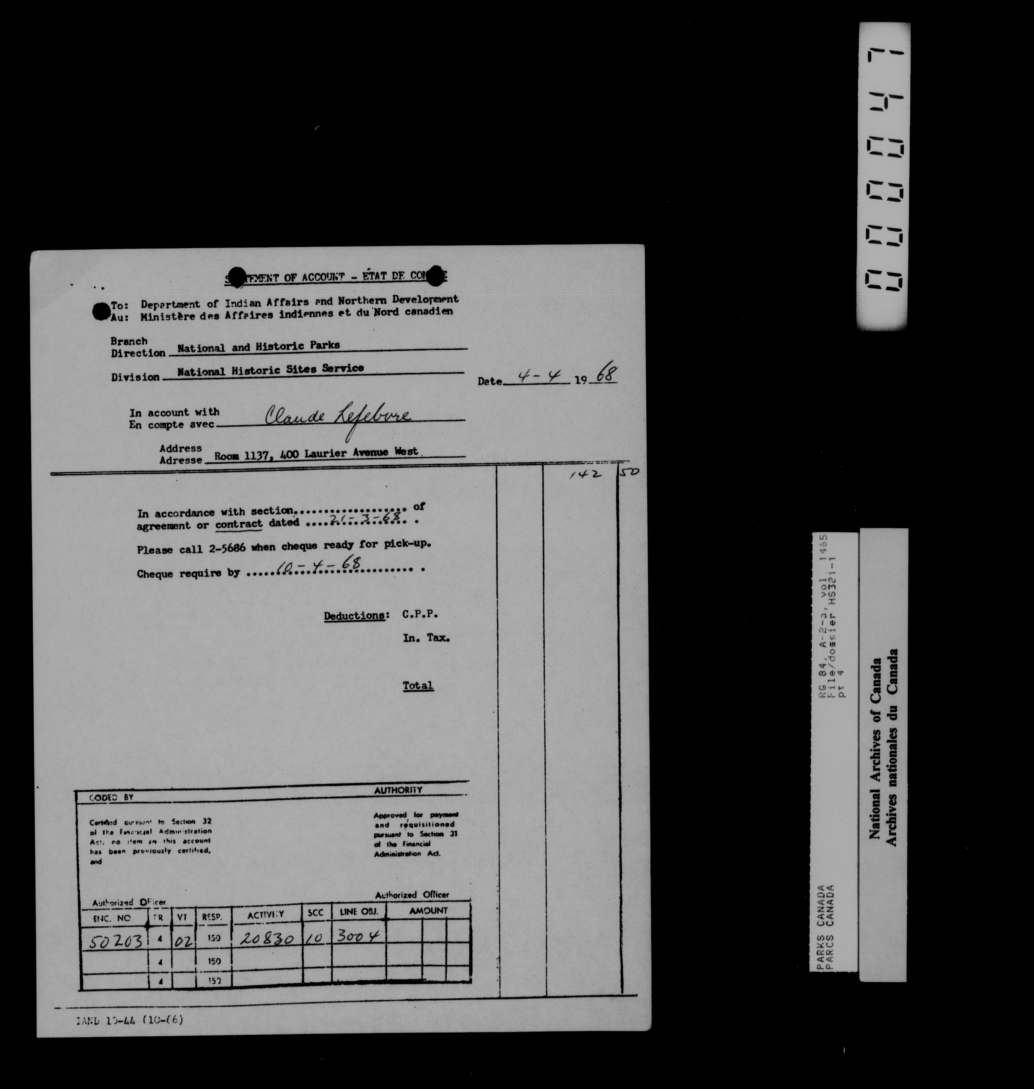 Department of Canadian Heritage, Canadian Parks Service : Park/subject classification system - 14289