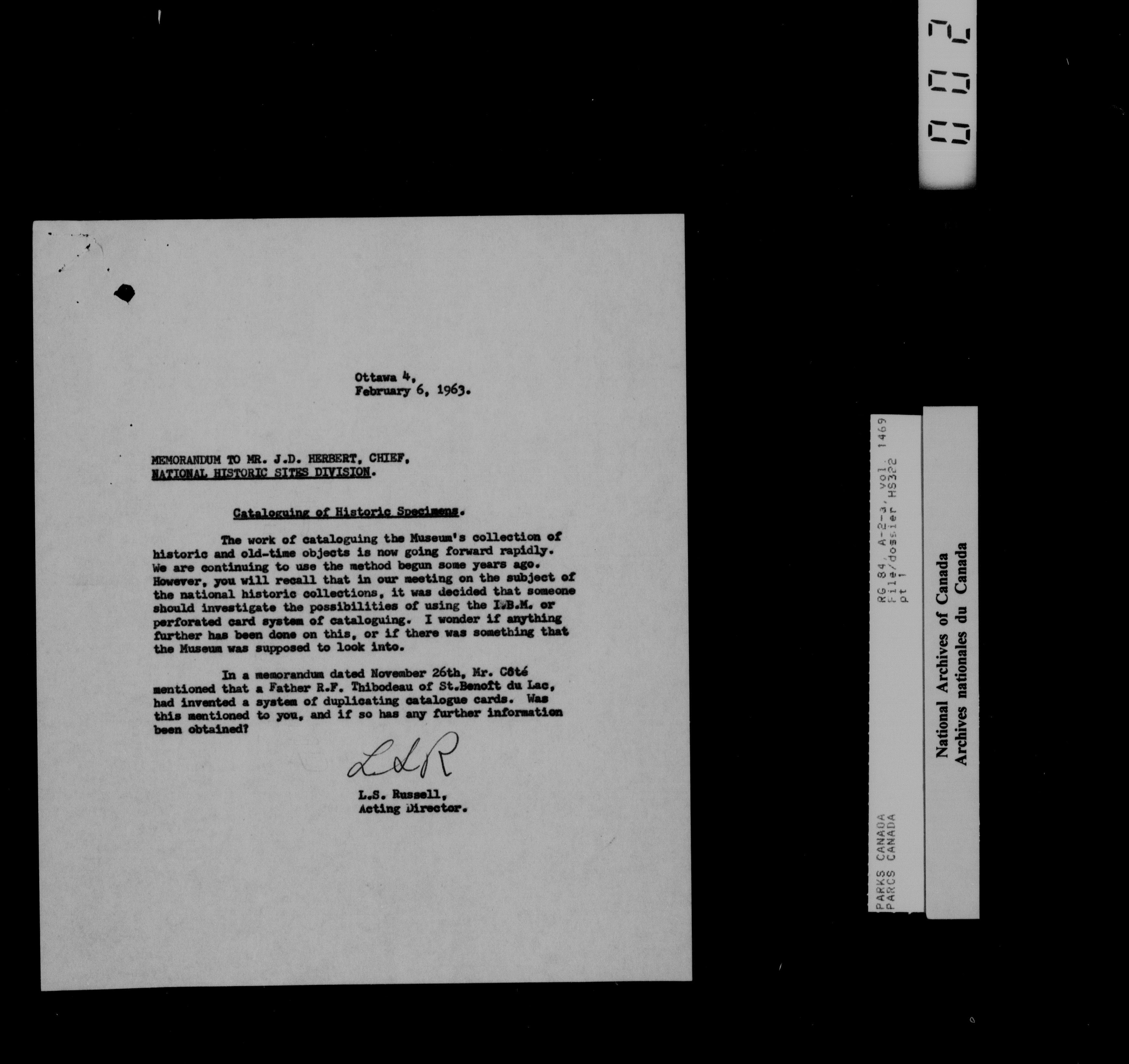 Department of Canadian Heritage, Canadian Parks Service : Park/subject classification system - 14291