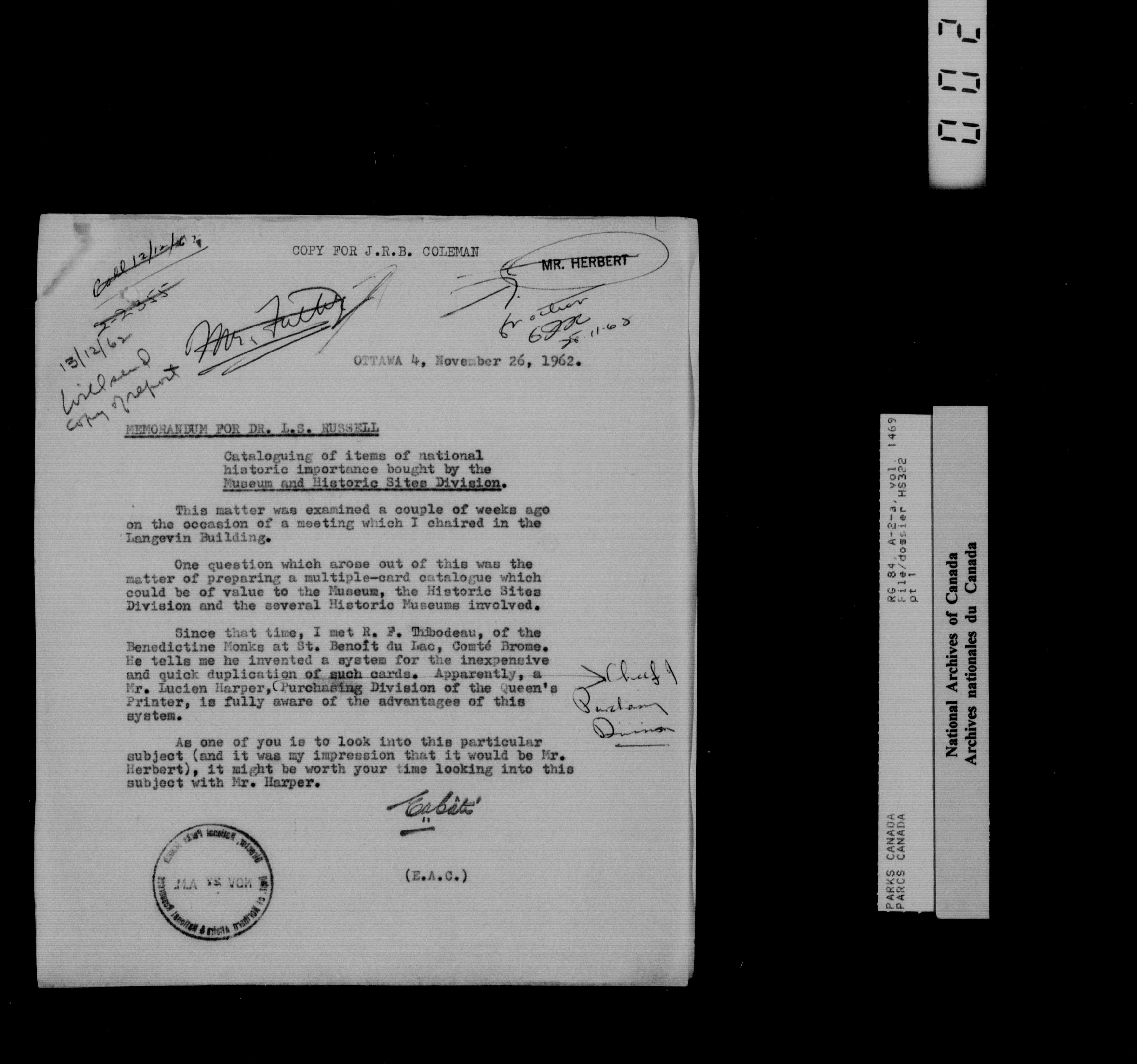 Department of Canadian Heritage, Canadian Parks Service : Park/subject classification system - 14291