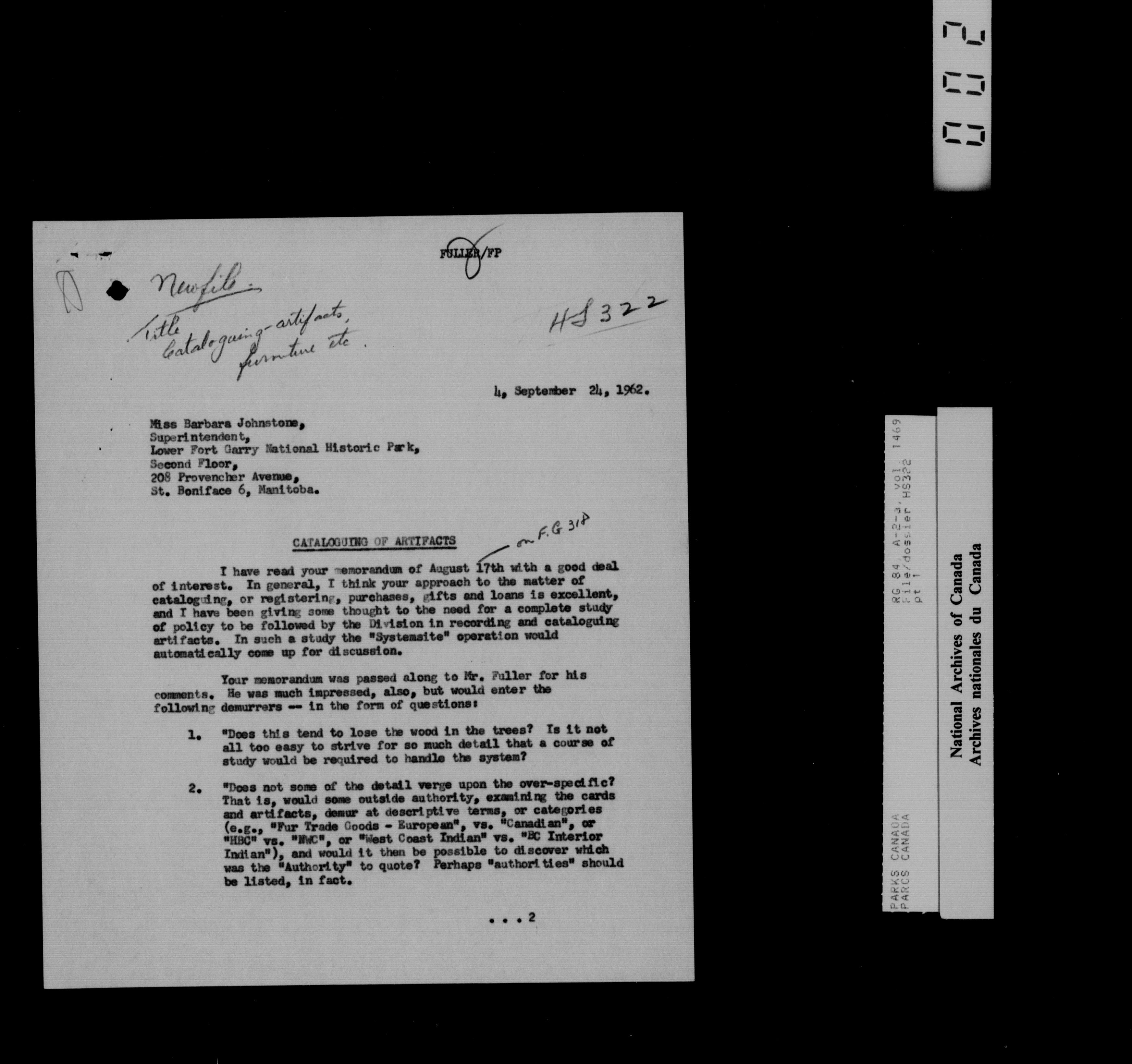 Department of Canadian Heritage, Canadian Parks Service : Park/subject classification system - 14291
