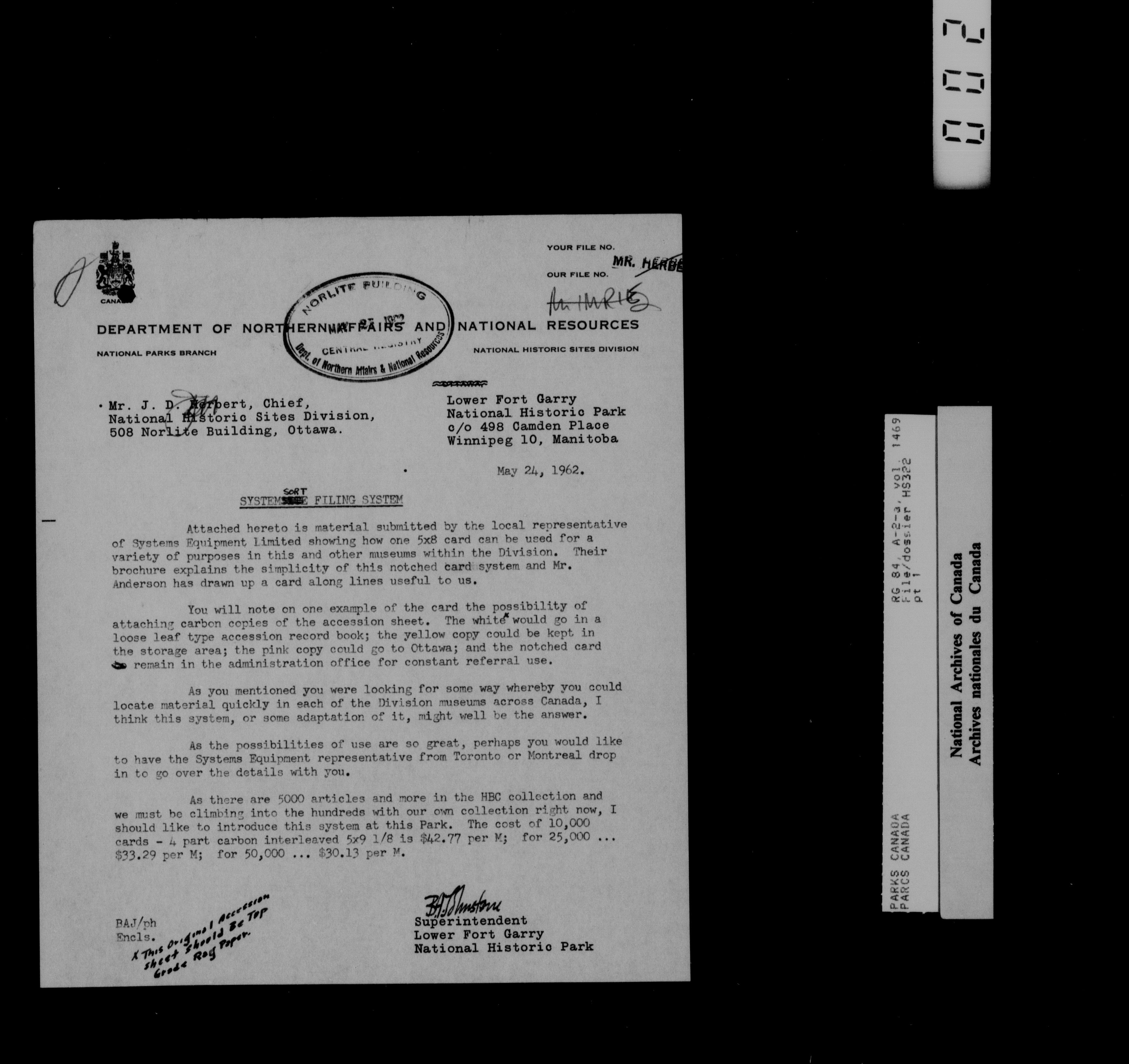 Department of Canadian Heritage, Canadian Parks Service : Park/subject classification system - 14291