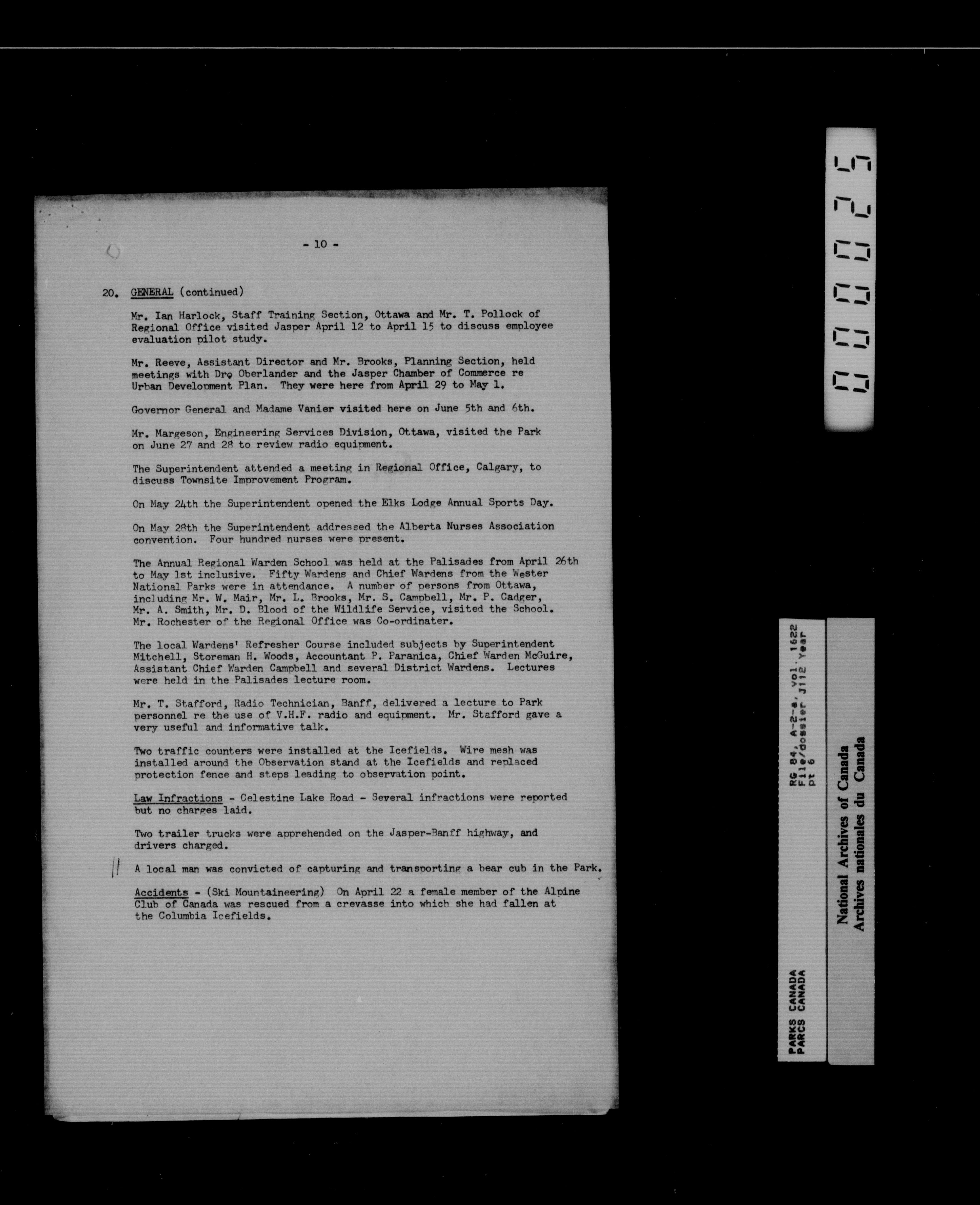 Department of Canadian Heritage, Canadian Parks Service : Park/subject classification system : T-14299
