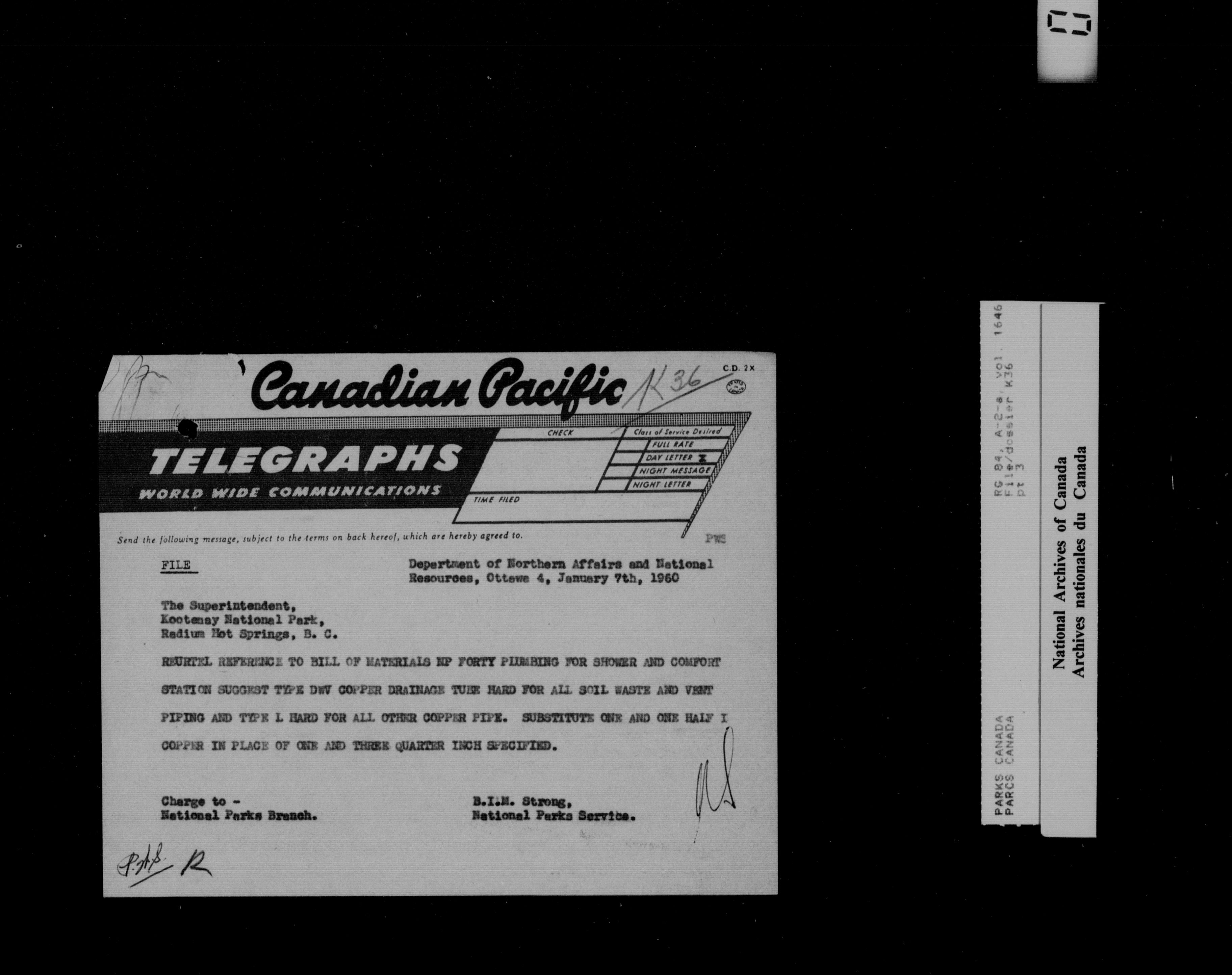 Department of Canadian Heritage, Canadian Parks Service : Park/subject classification system : T-14353