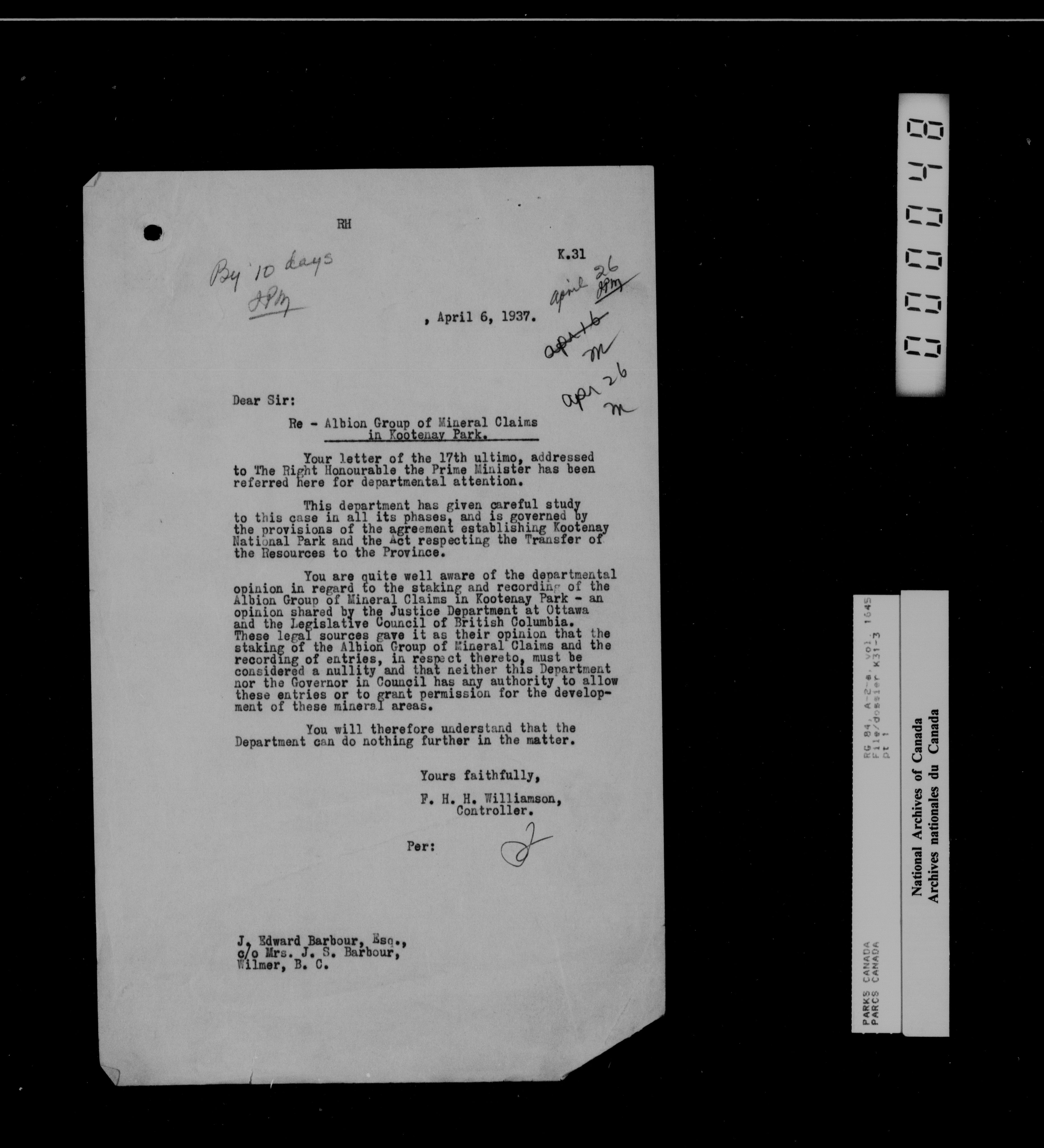 Department of Canadian Heritage, Canadian Parks Service : Park/subject classification system - 14353