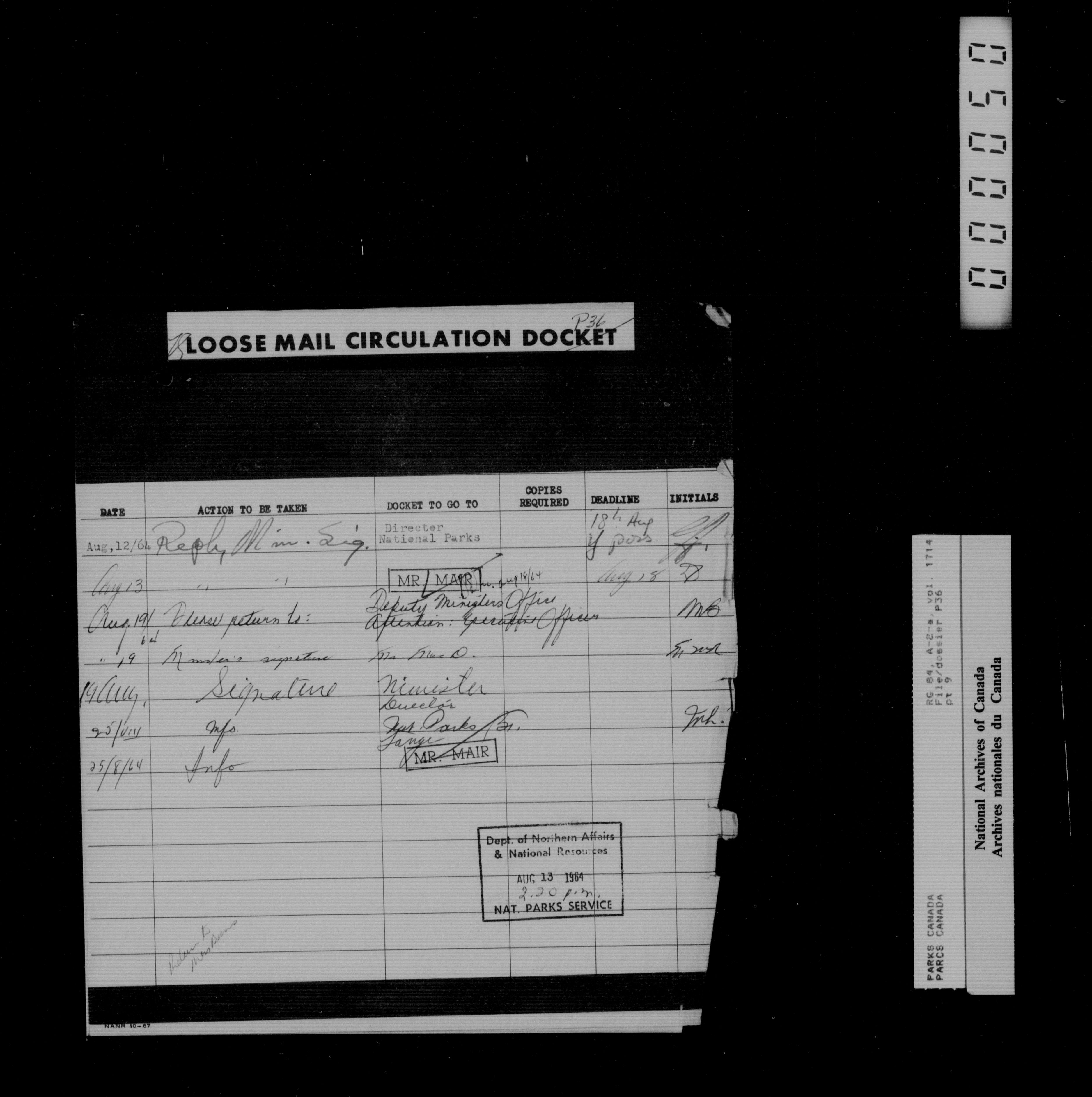 Department of Canadian Heritage, Canadian Parks Service : Park/subject classification system - 14374