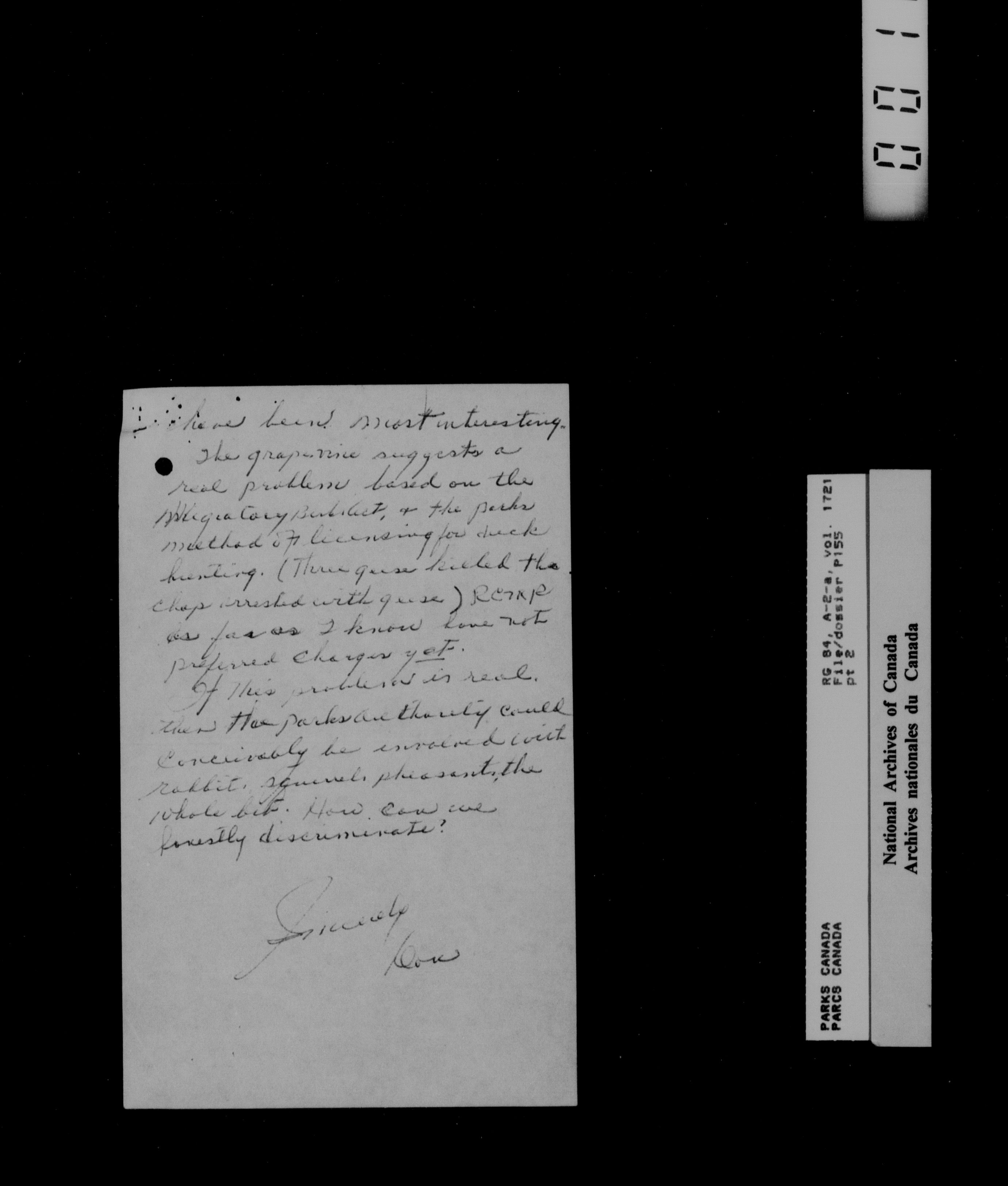 Department of Canadian Heritage, Canadian Parks Service : Park/subject classification system - 14376
