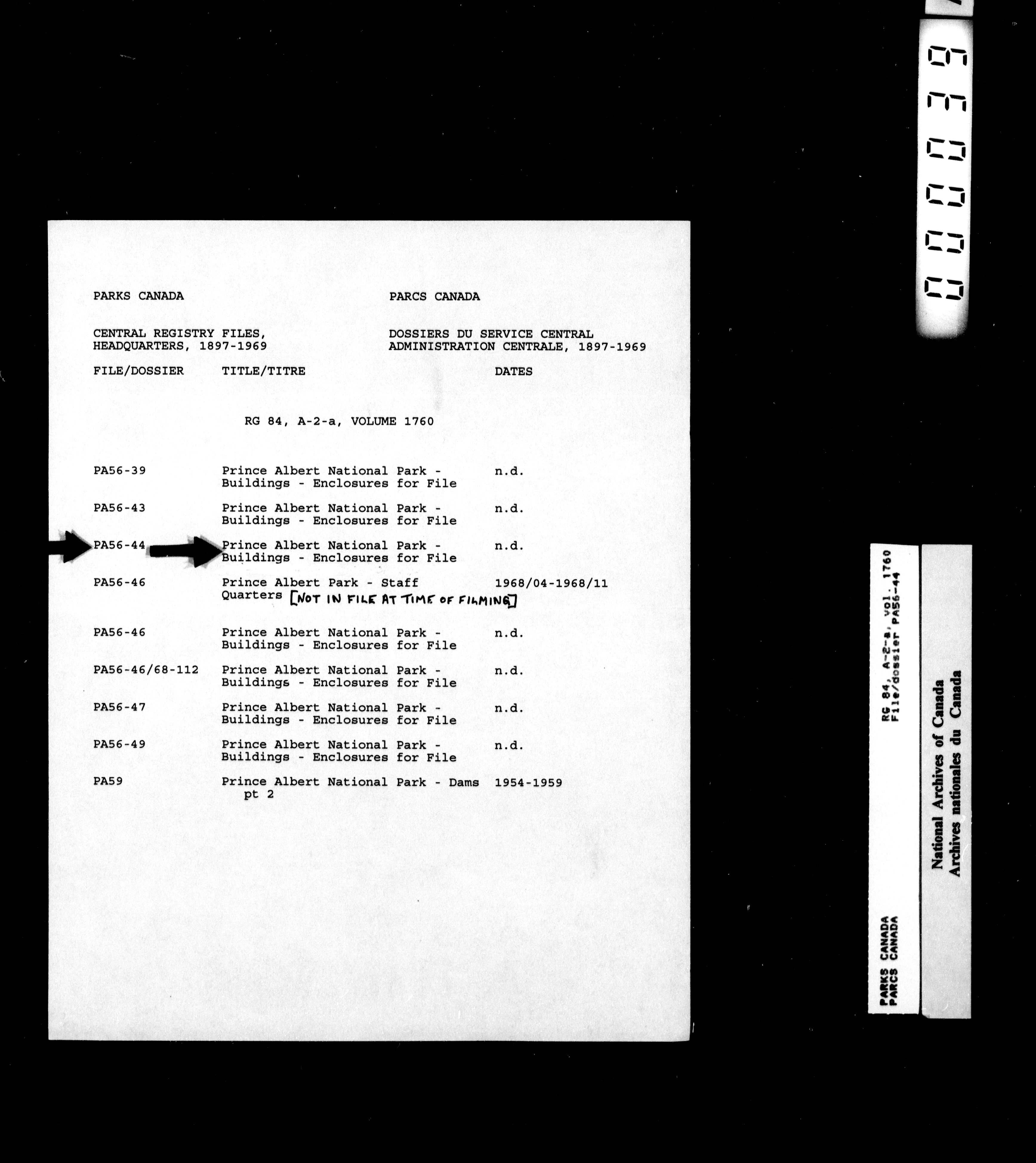 Department of Canadian Heritage, Canadian Parks Service : Park/subject classification system - 14385