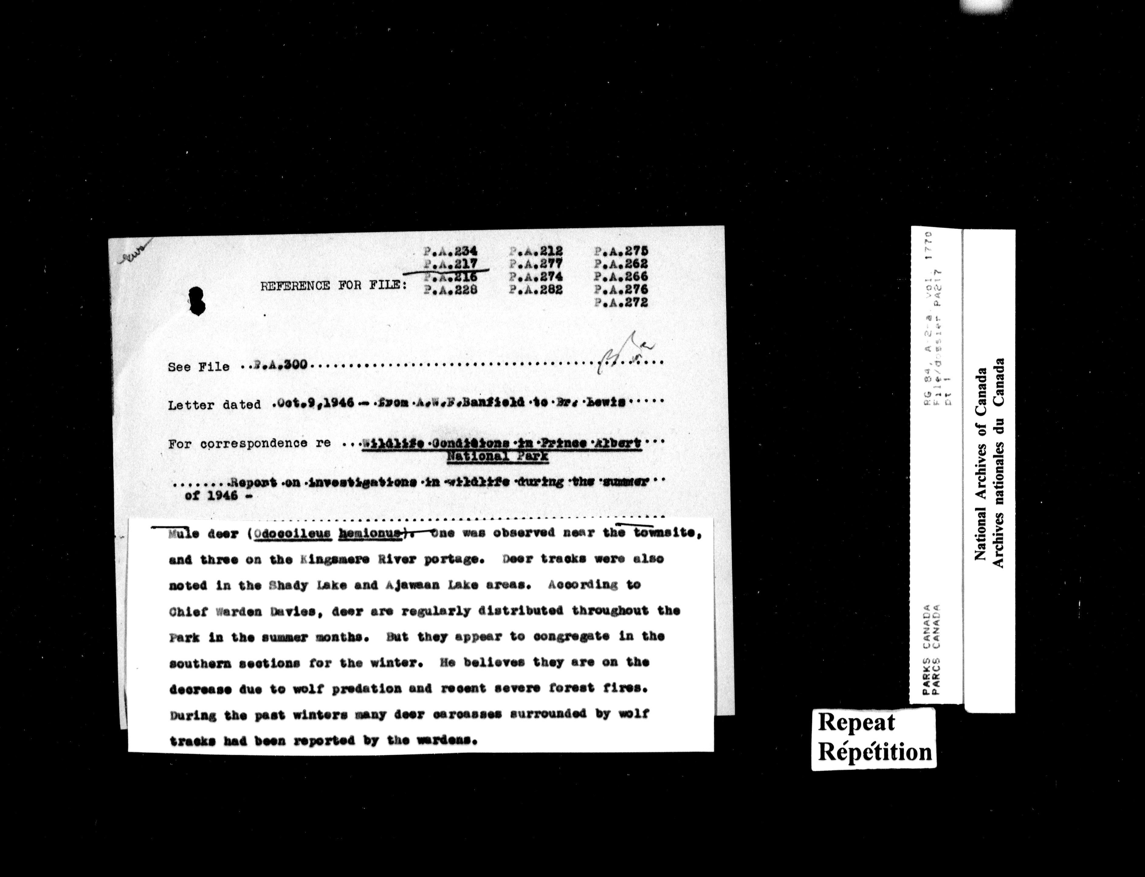 Department of Canadian Heritage, Canadian Parks Service : Park/subject classification system : T-14389