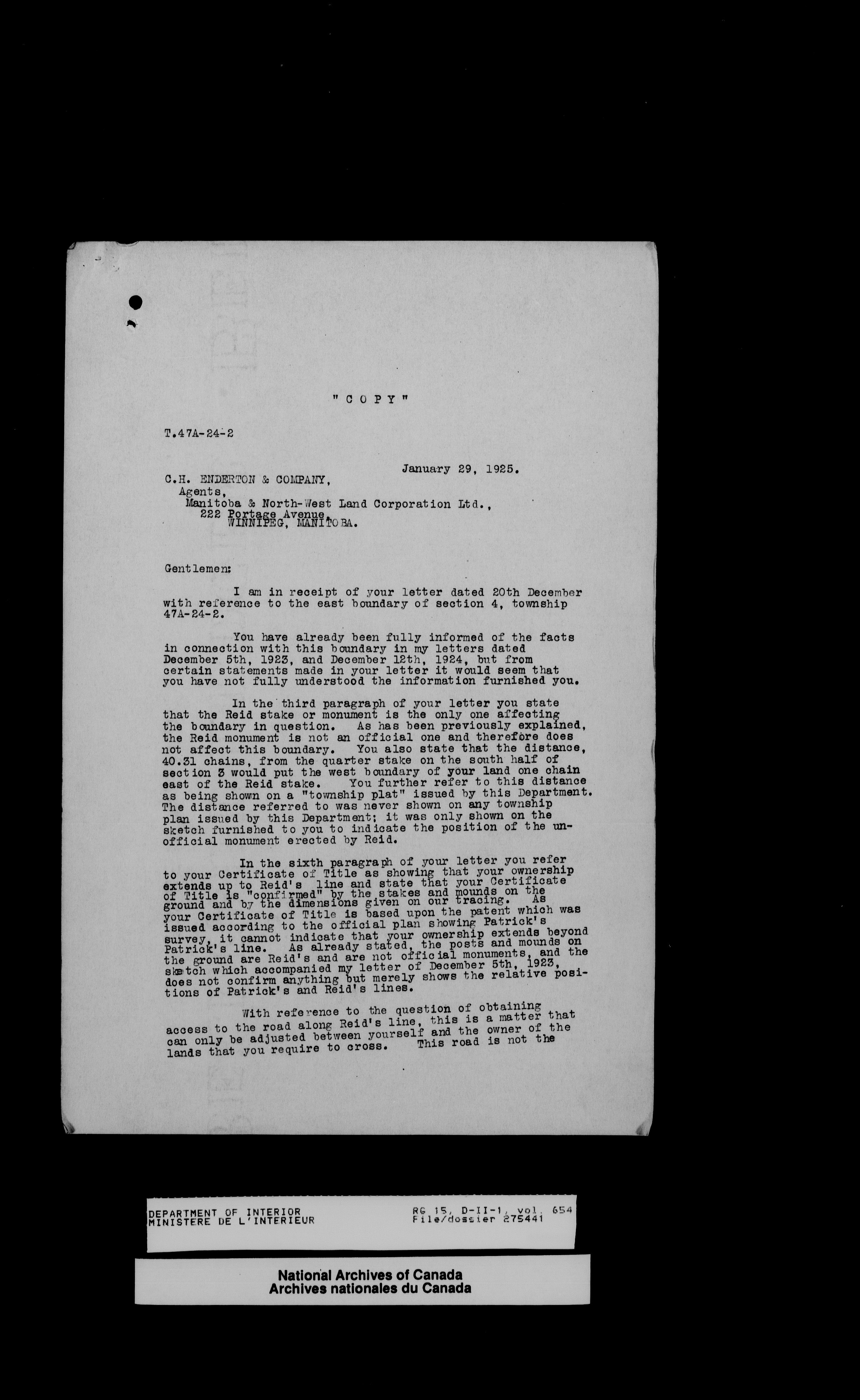 Central registry subject files created by the Dominion Lands Branch - 14403