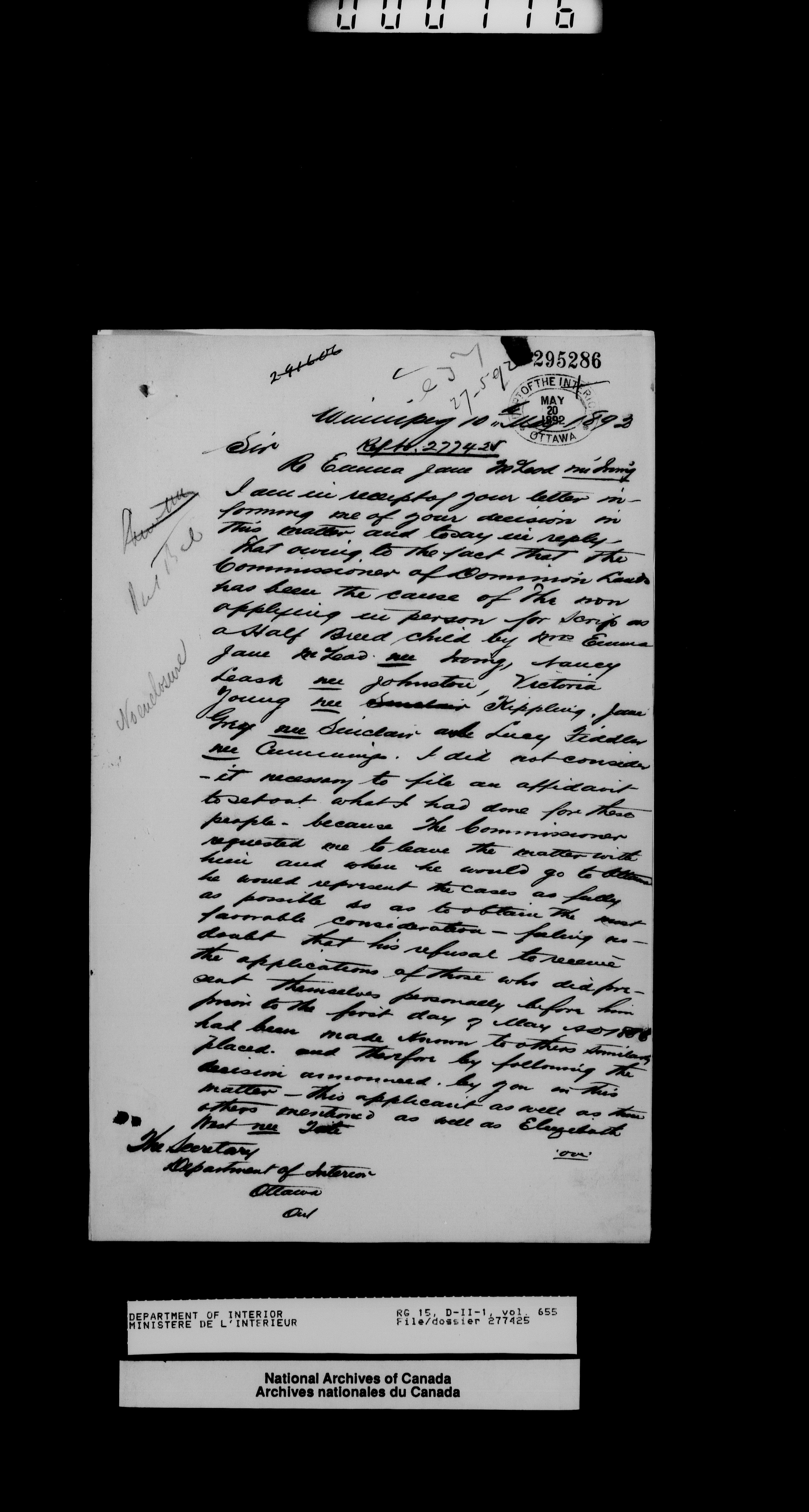 Central registry subject files created by the Dominion Lands Branch - 14404