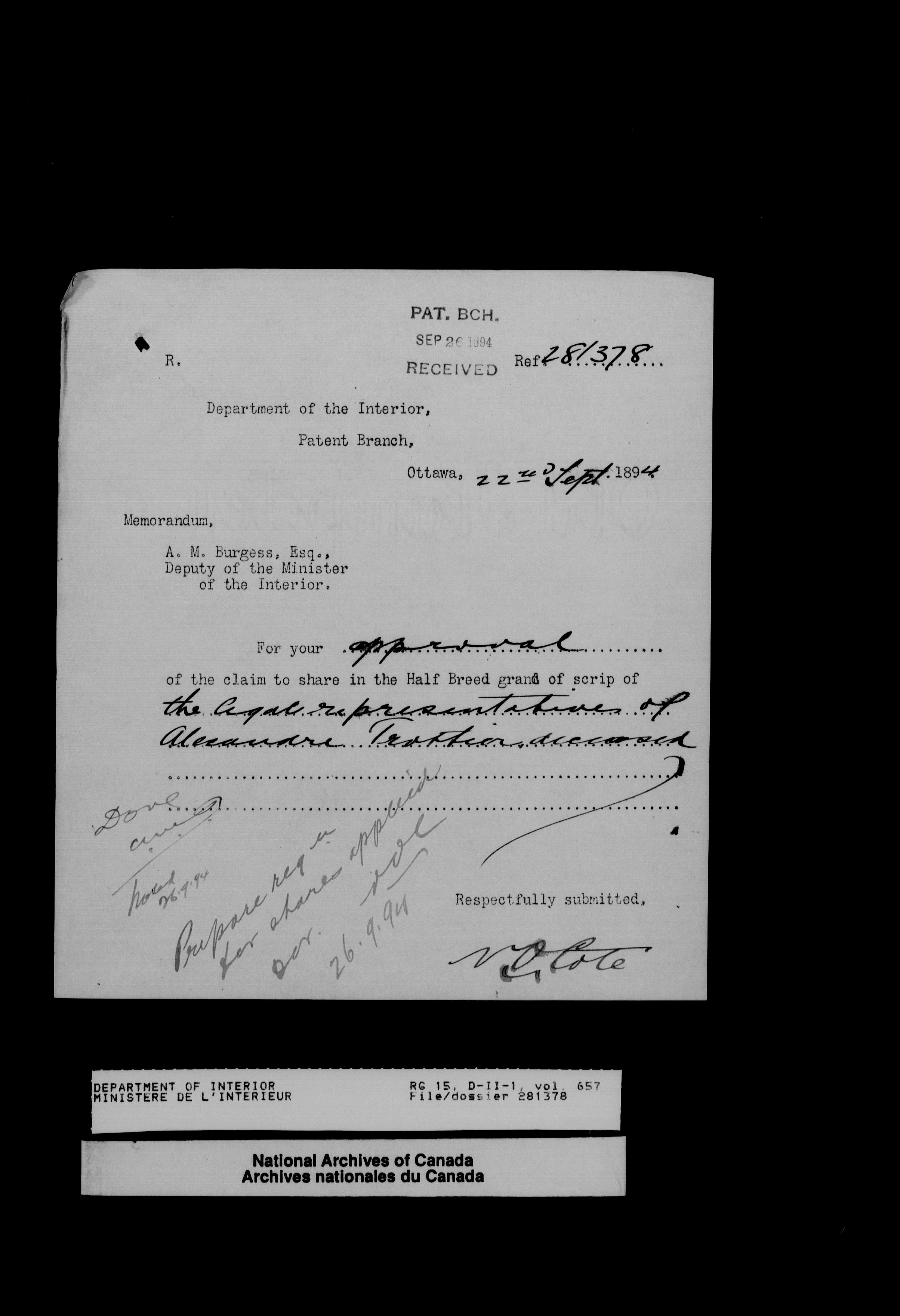 Central registry subject files created by the Dominion Lands Branch - 14406